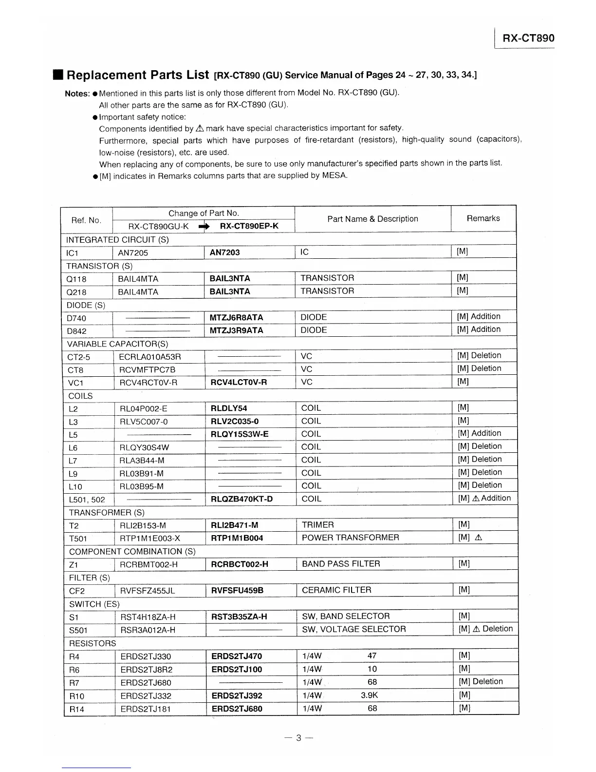 Panasonic RX-CT890 - Replacement Parts List