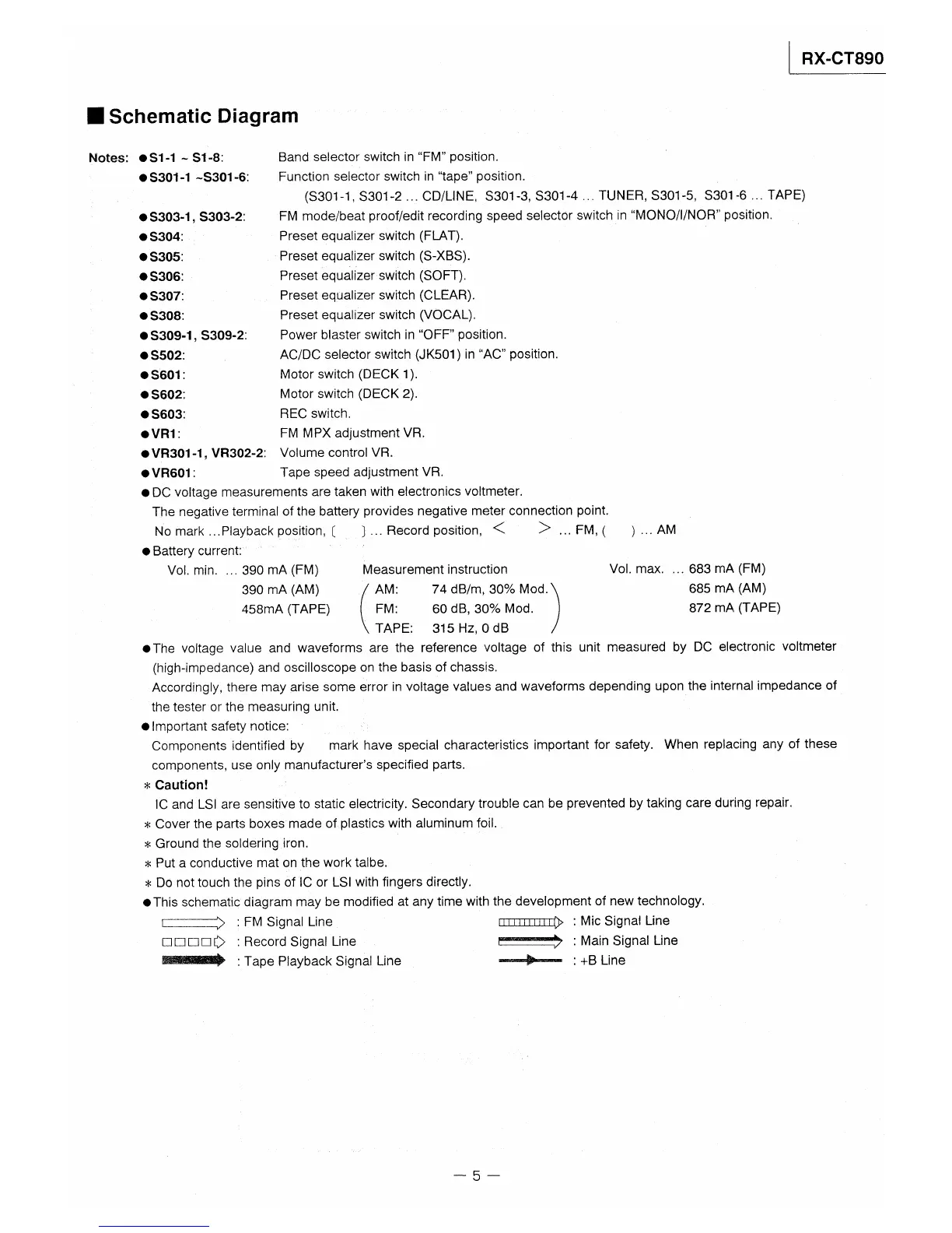 Panasonic RX-CT890 - Schematic Diagram Introduction; Important Safety Notices for Schematics