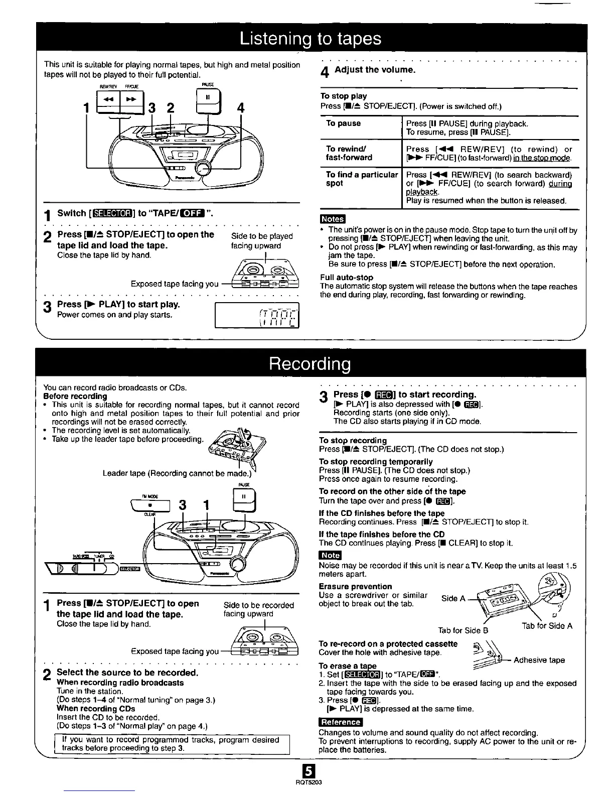 Panasonic RX-D11 - Tape Playback; Playing Normal Tapes; Tape Controls; Full Auto-Stop