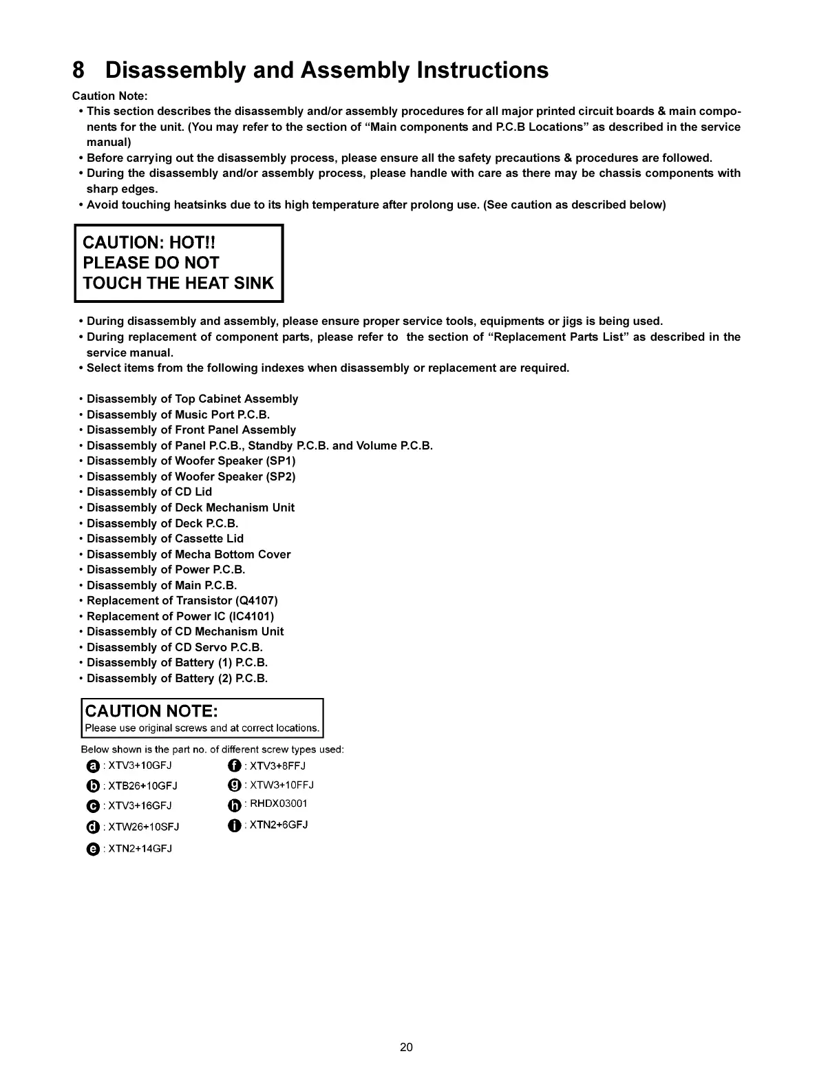 • This section describes the disassembly and/or assembly procedures for all major printed circuit boards & main compo-
