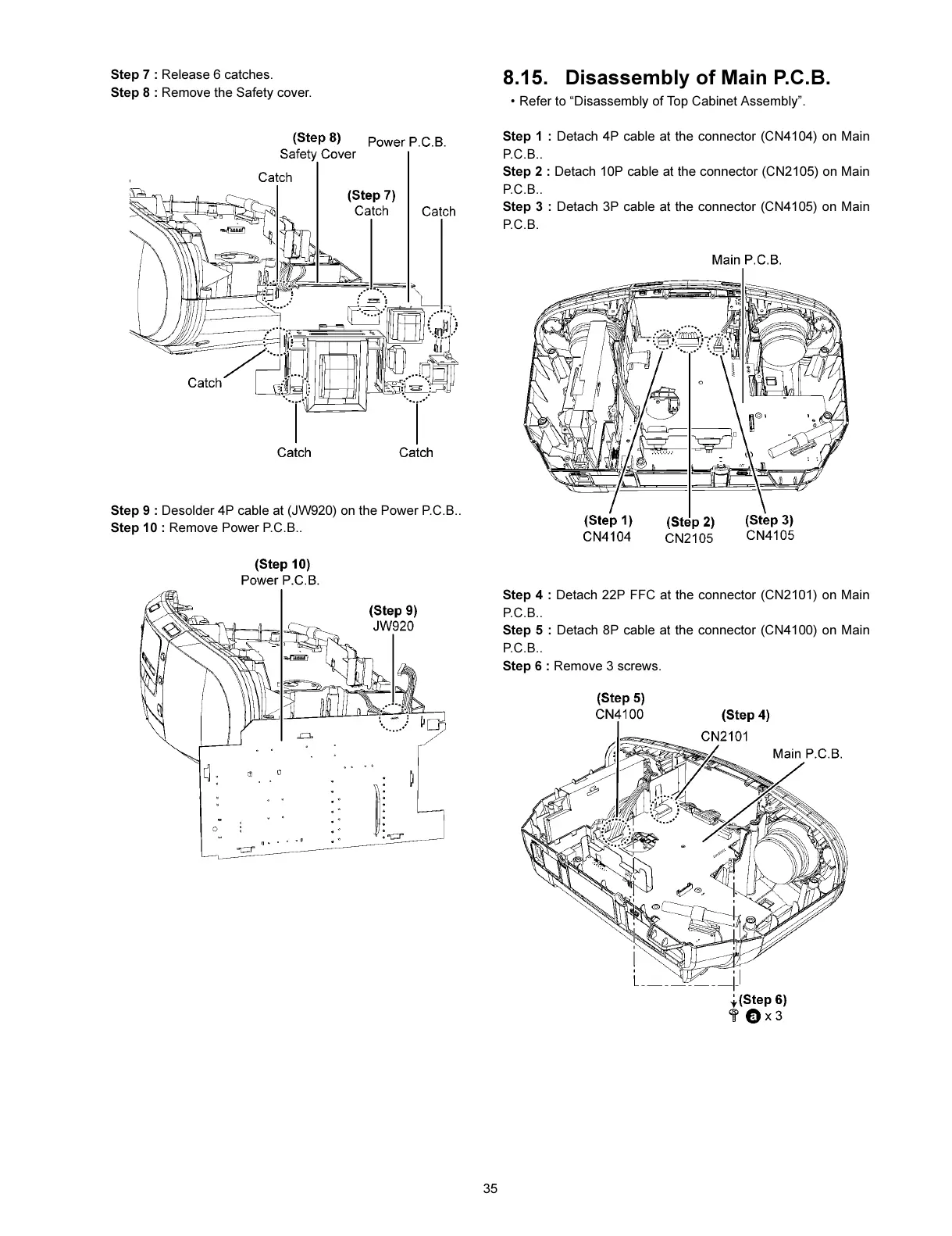 Step 9 : Desolder 4P cable at (JW920) on the Power P.C.B..