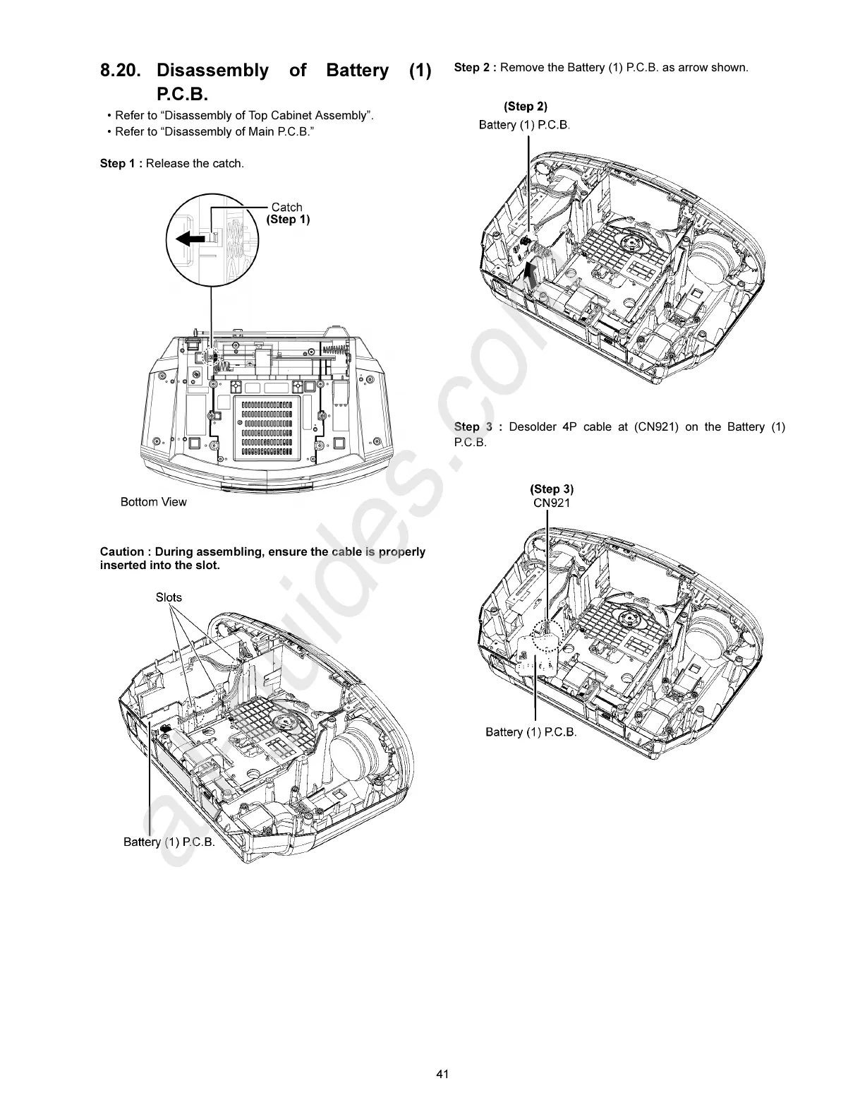 Step 2 : Remove the Battery (1) P.C.B. as arrow shown.