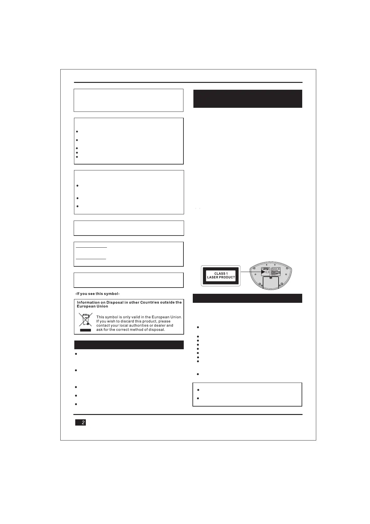 Do not install or place this unit in a bookcase, built-in