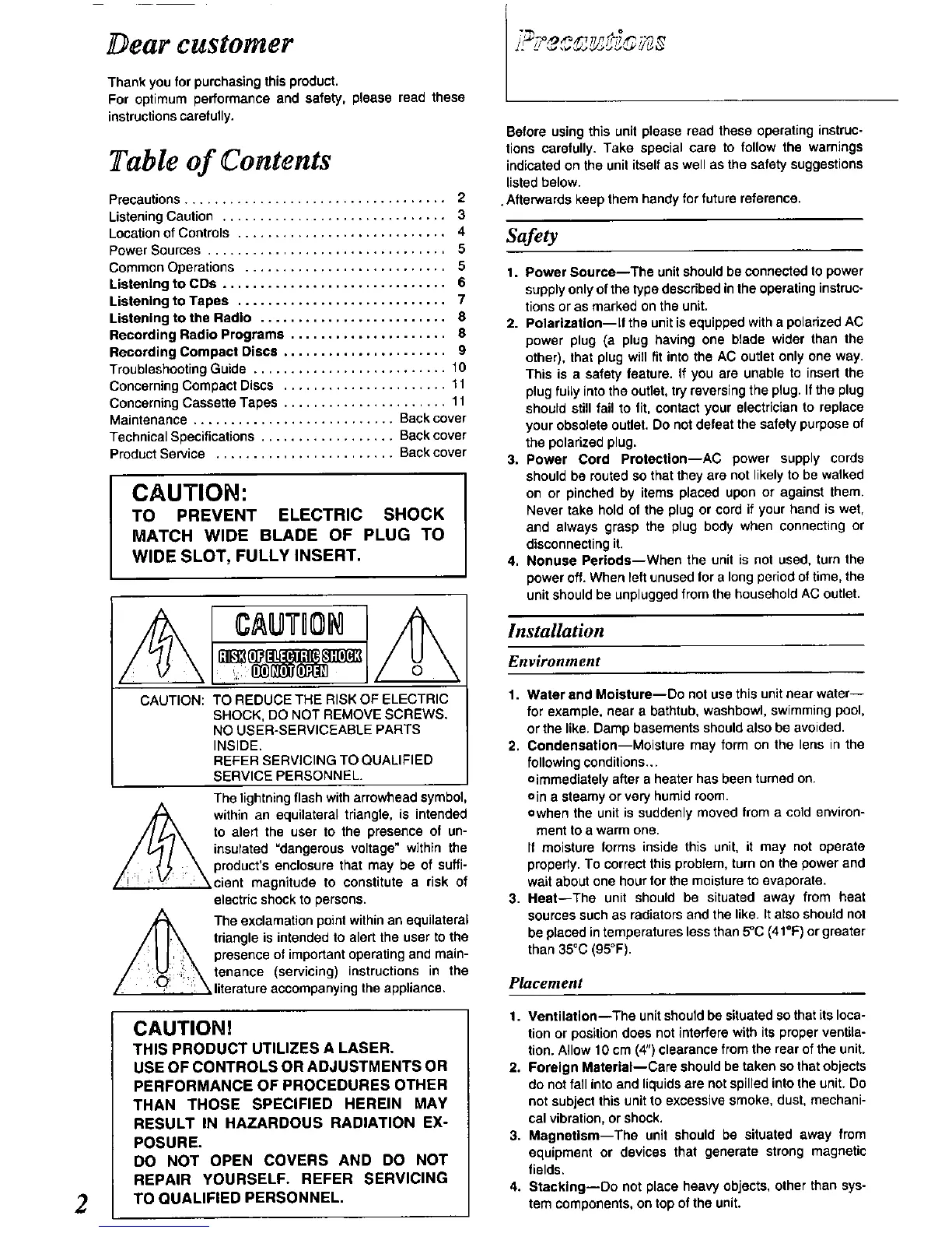 Panasonic RX-DS11 - Safety and Installation Guidelines; General Safety Precautions; Installation Environment; Unit Placement