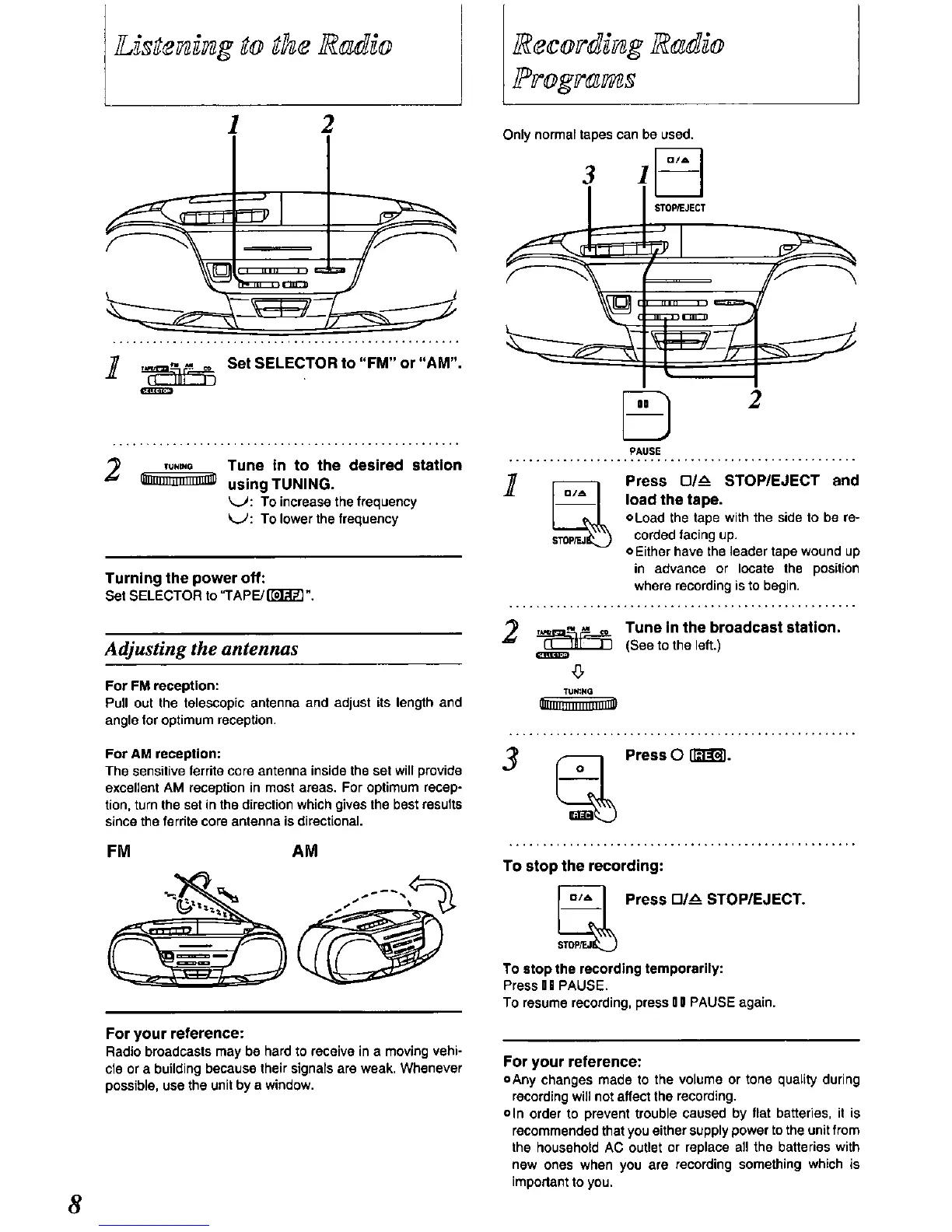Panasonic RX-DS11 - Listening to the Radio; Recording Functions; Recording Radio Programs