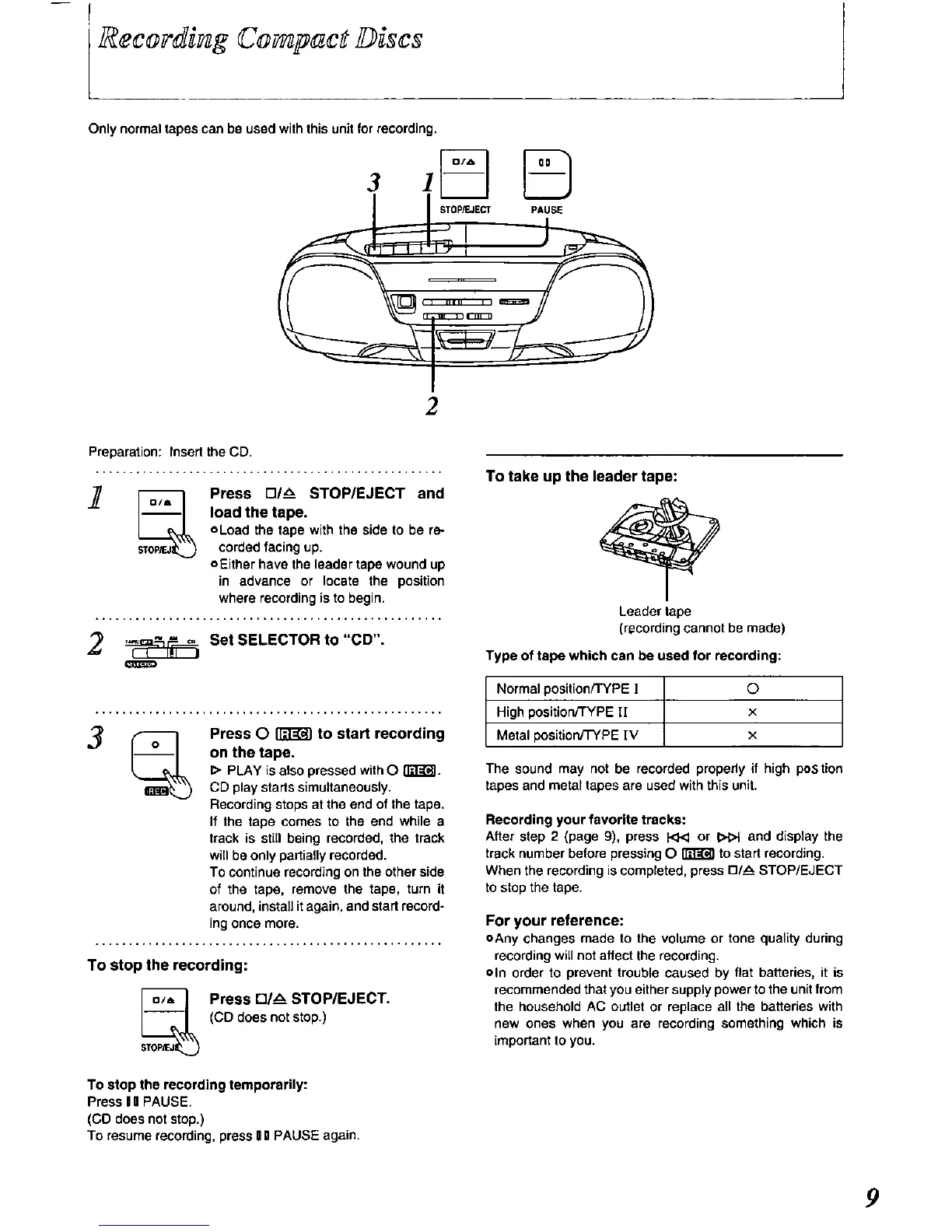 Panasonic RX-DS11 - Recording Compact Discs; Supported Tape Types