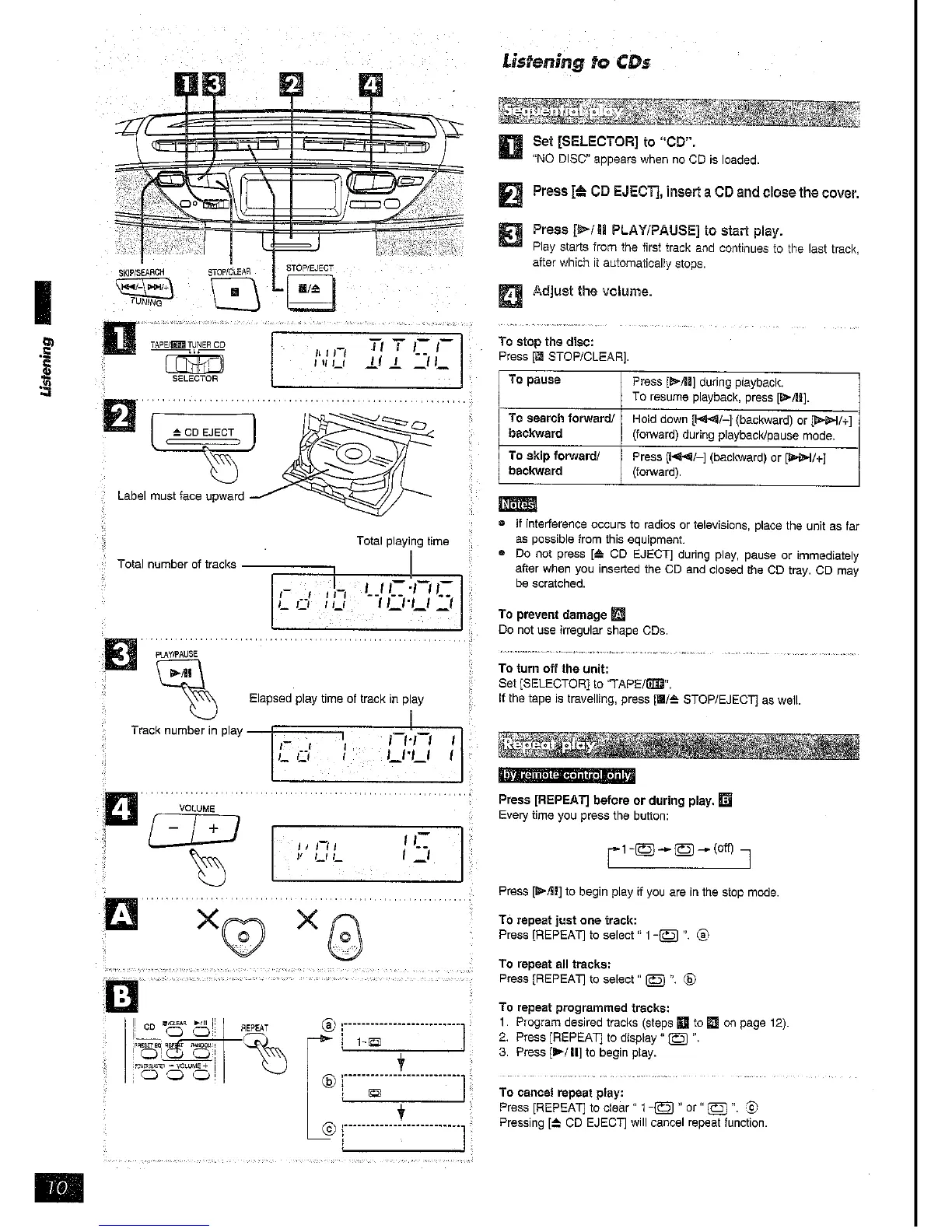 Panasonic RX-DT39 - CD Playback Operations; Standard CD Track Playback; CD Track and Album Repeat Play