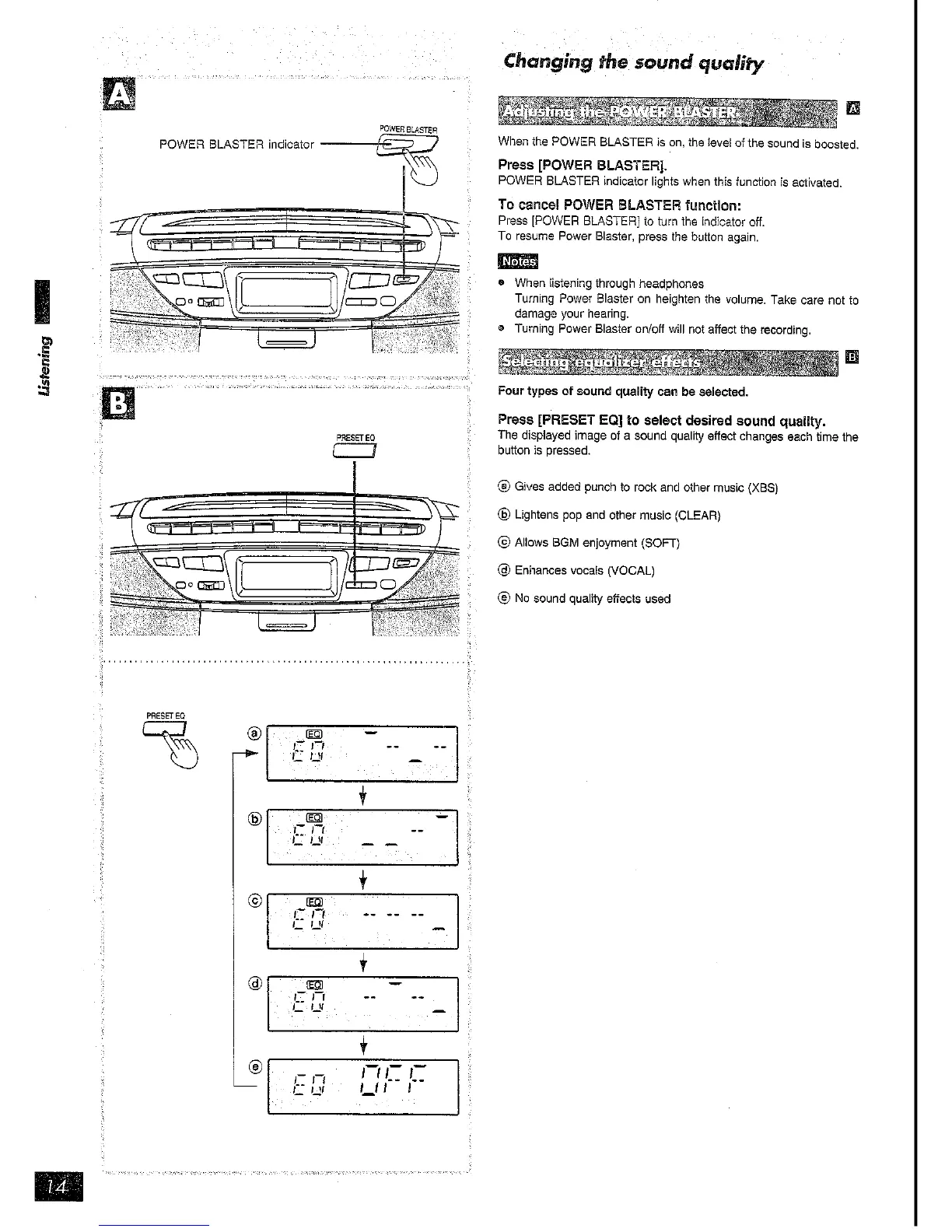 Panasonic RX-DT39 - Audio Sound Customization; POWER BLASTER Volume Boost; Preset Equalizer Sound Modes