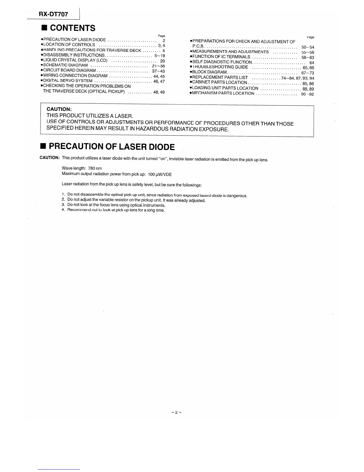 Panasonic RX-DT707 - Laser Diode Safety Precautions; Laser Diode Handling Precautions