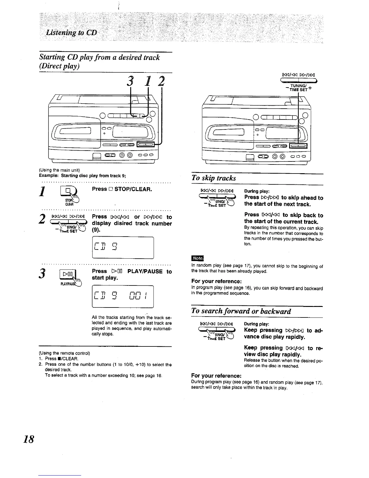 Panasonic RX-E300 - Starting CD Play from a Desired Track (Direct Play); To Skip Tracks; To Search Forward or Backward