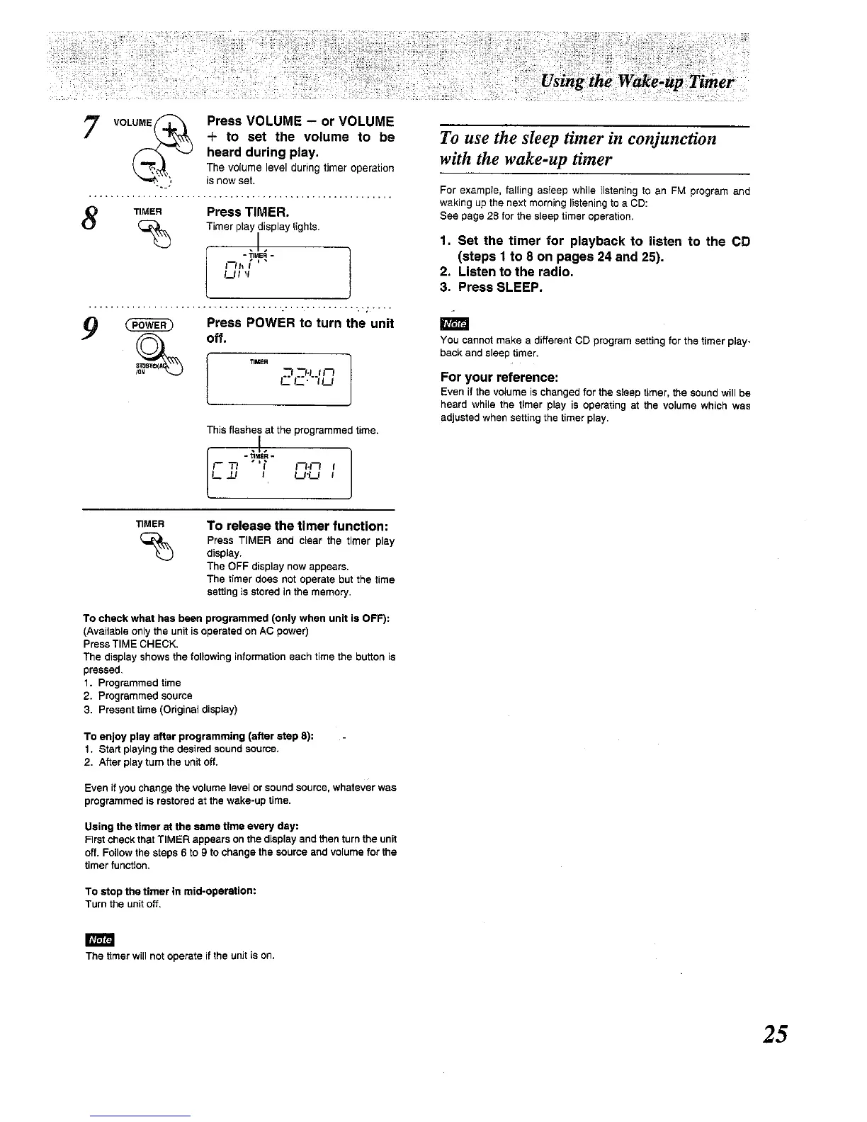 Panasonic RX-E300 - To Use the Sleep Timer in Conjunction with the Wake-Up Timer; To Check What Has Been Programmed; To Enjoy Play after Programming; Using the Timer at the same Time Every Day