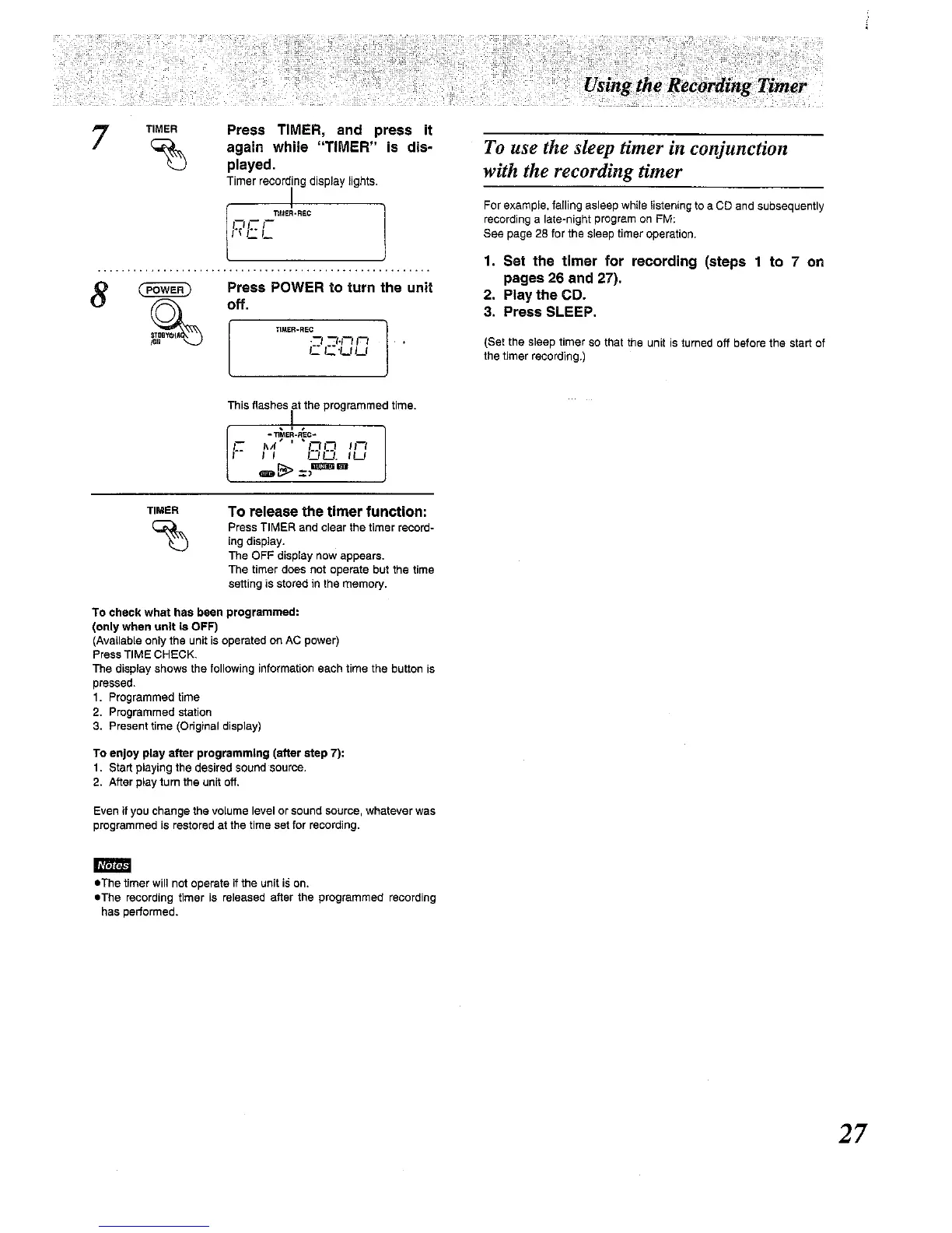 Panasonic RX-E300 - Recording Timer Operations; Using Recording Timer with Sleep Timer; Timer Recording Management