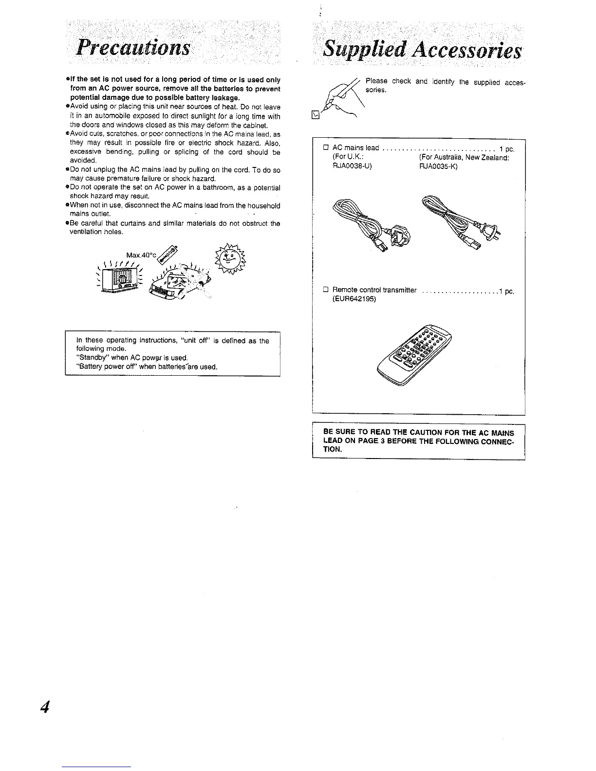 Panasonic RX-E300 - Precautions and Supplied Accessories; General Precautions