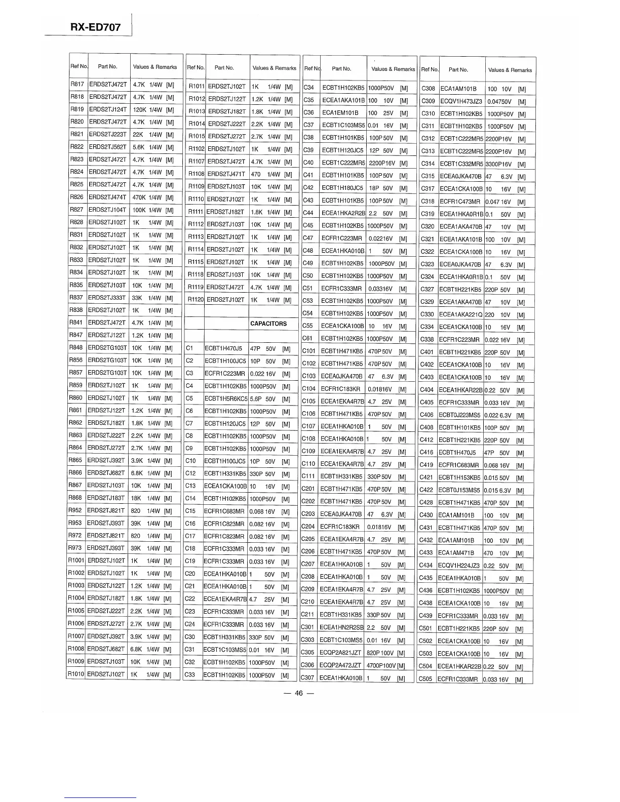 Panasonic RX-ED707 - Capacitors Part List