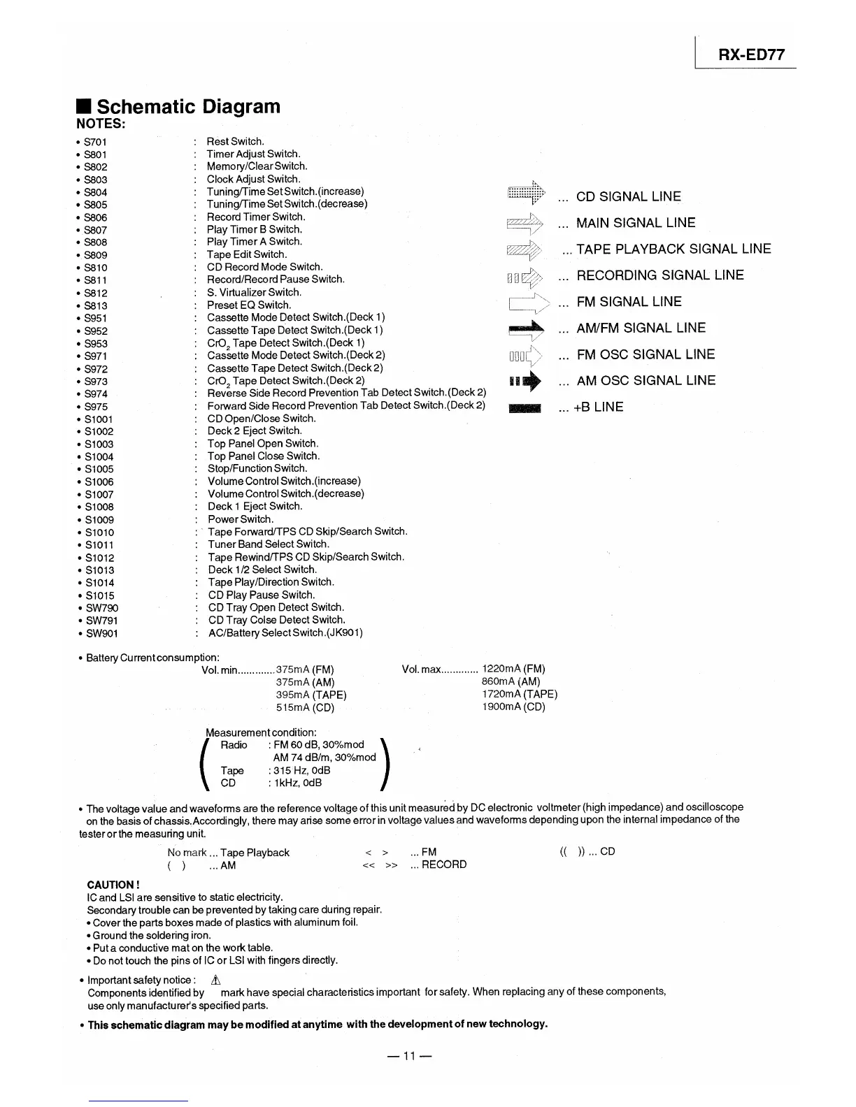 Panasonic RX-ED77 - Schematic Diagram; Component Identification and Notes; Battery Current Consumption