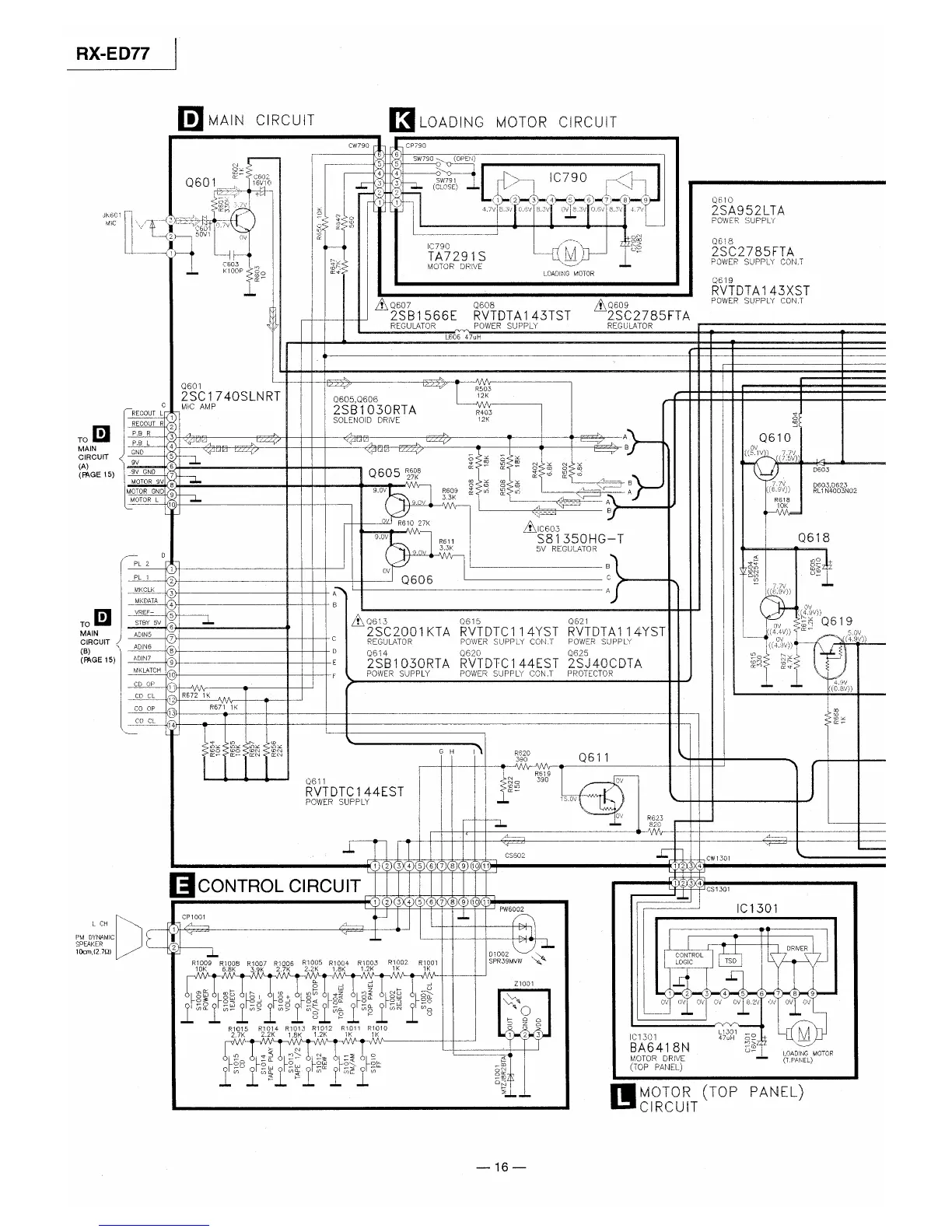 Panasonic RX-ED77 - Control and Motor Circuits; Loading Motor Circuit; Control Circuit; Motor (Top Panel) Circuit