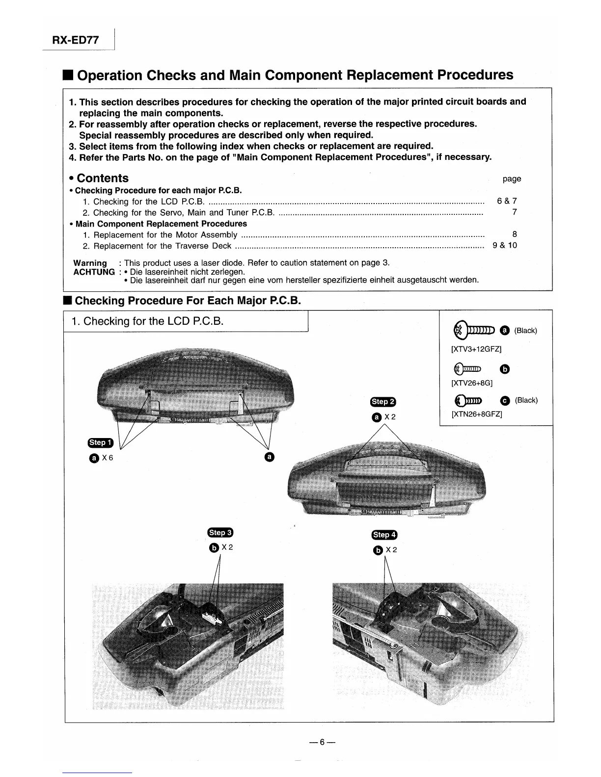 Panasonic RX-ED77 - Operation Checks and Main Component Replacement Procedures; Checking Procedures for Major P.C.B.s; Main Component Replacement Procedures