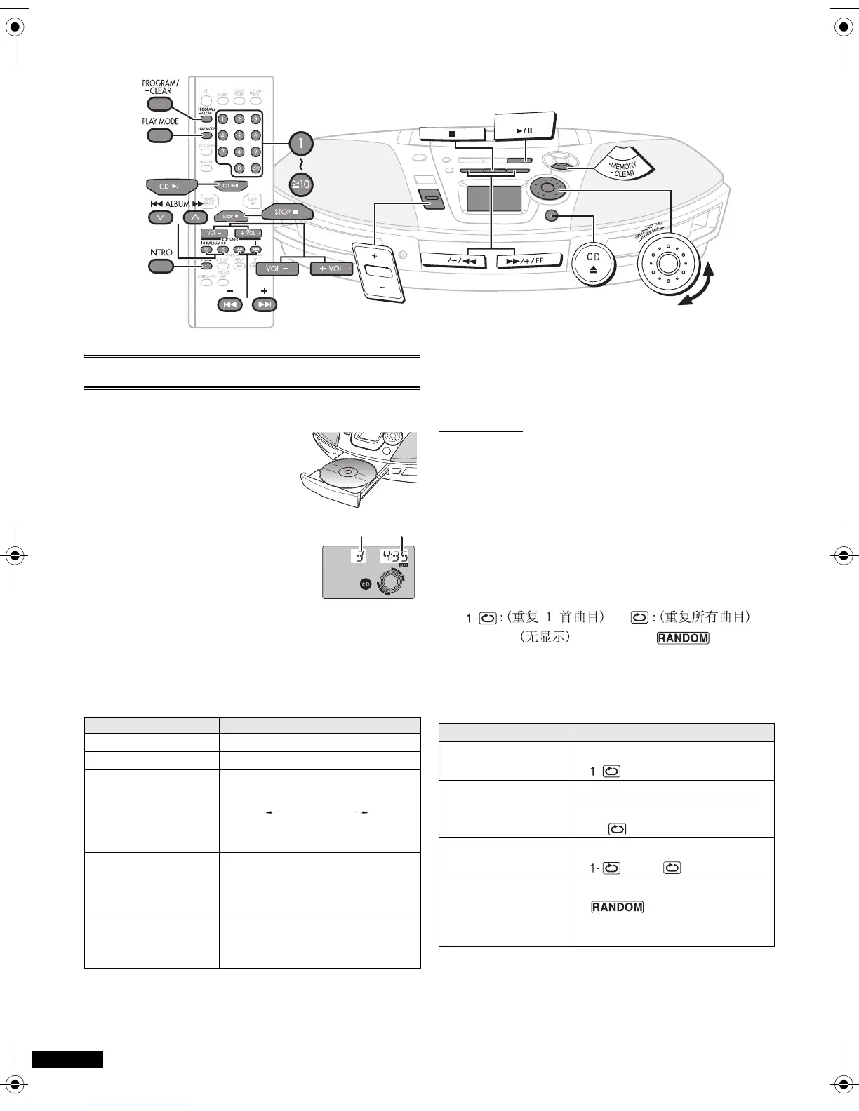 ≥ 在播放过程中,无法使用数字键选择曲目和跳至已播放的曲