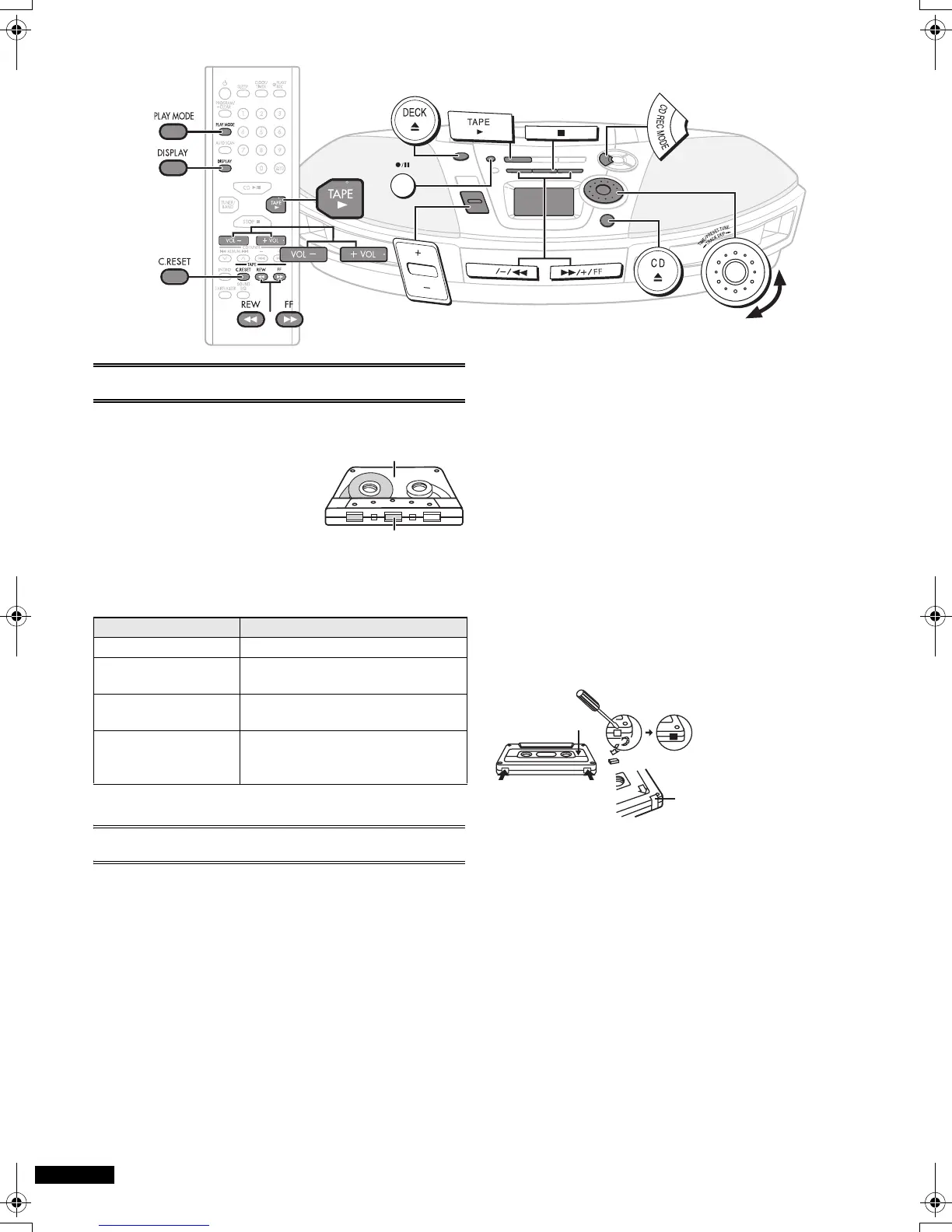 start one touch play* Press [1TAPE] when a cassette is
