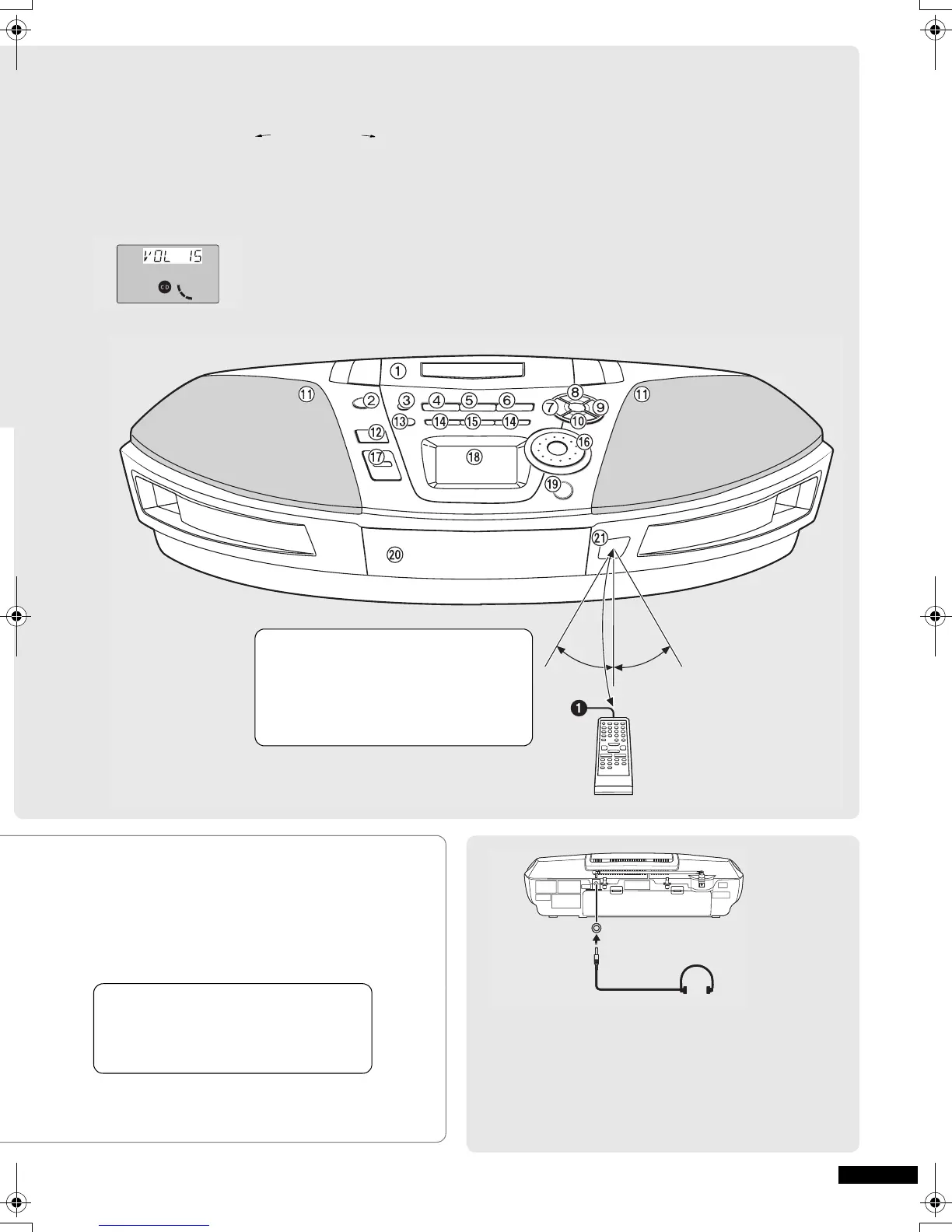 A Volume control buttons (+, – VOLUME)........ (l 7, 8, 10)