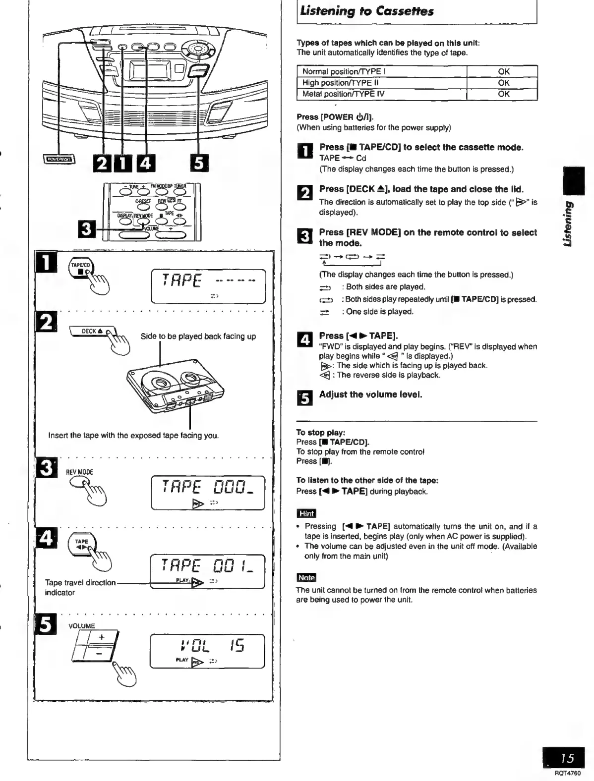 Panasonic RX-ES30 - Cassette Playback and Controls