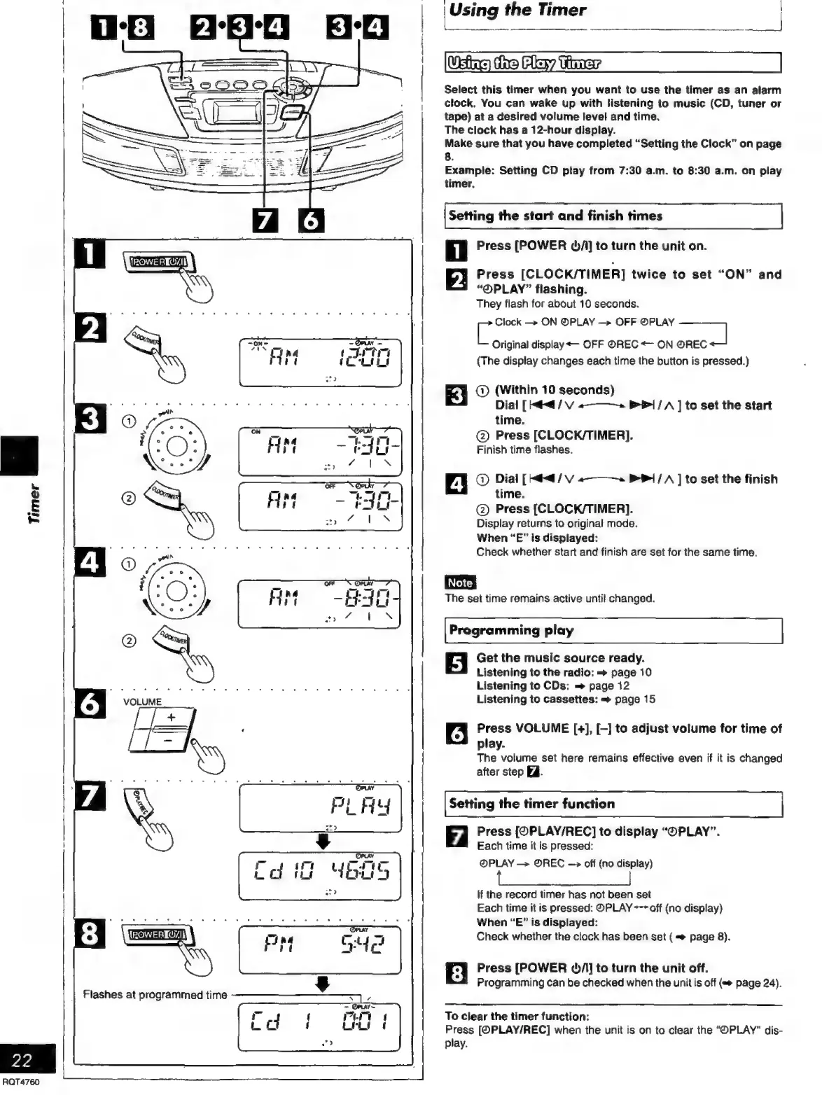 Panasonic RX-ES30 - Timer Functions; Setting the Play Timer