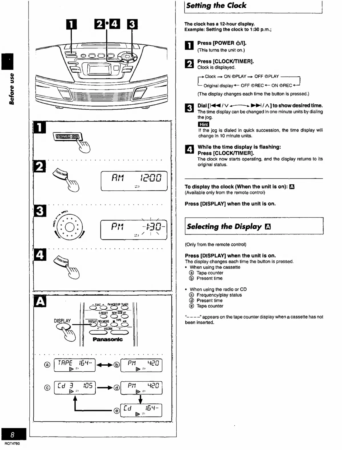 Panasonic RX-ES30 - Setting the Units Clock; Display Mode Selection