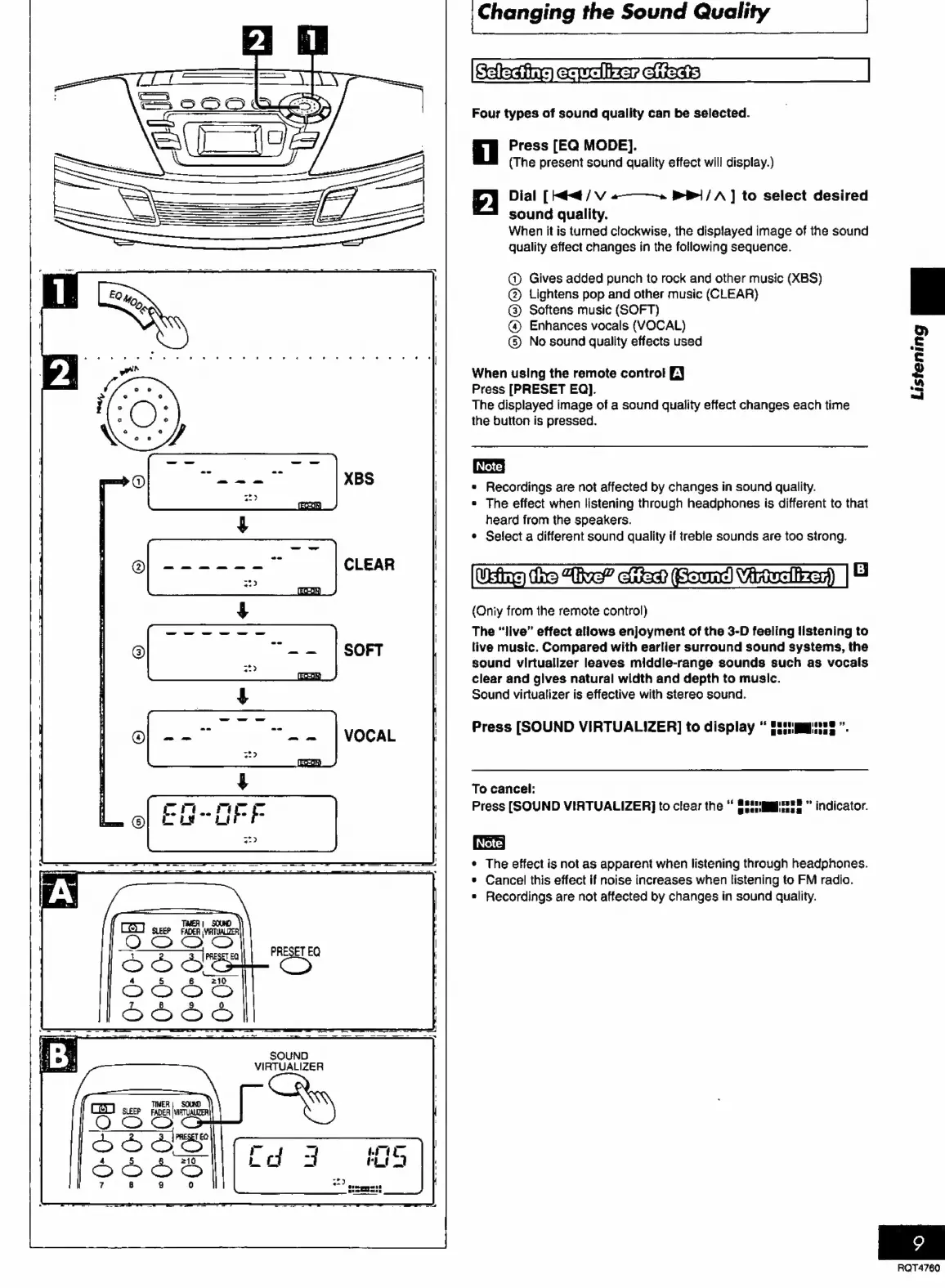 Panasonic RX-ES30 - Listening Operations; Adjusting Sound Quality
