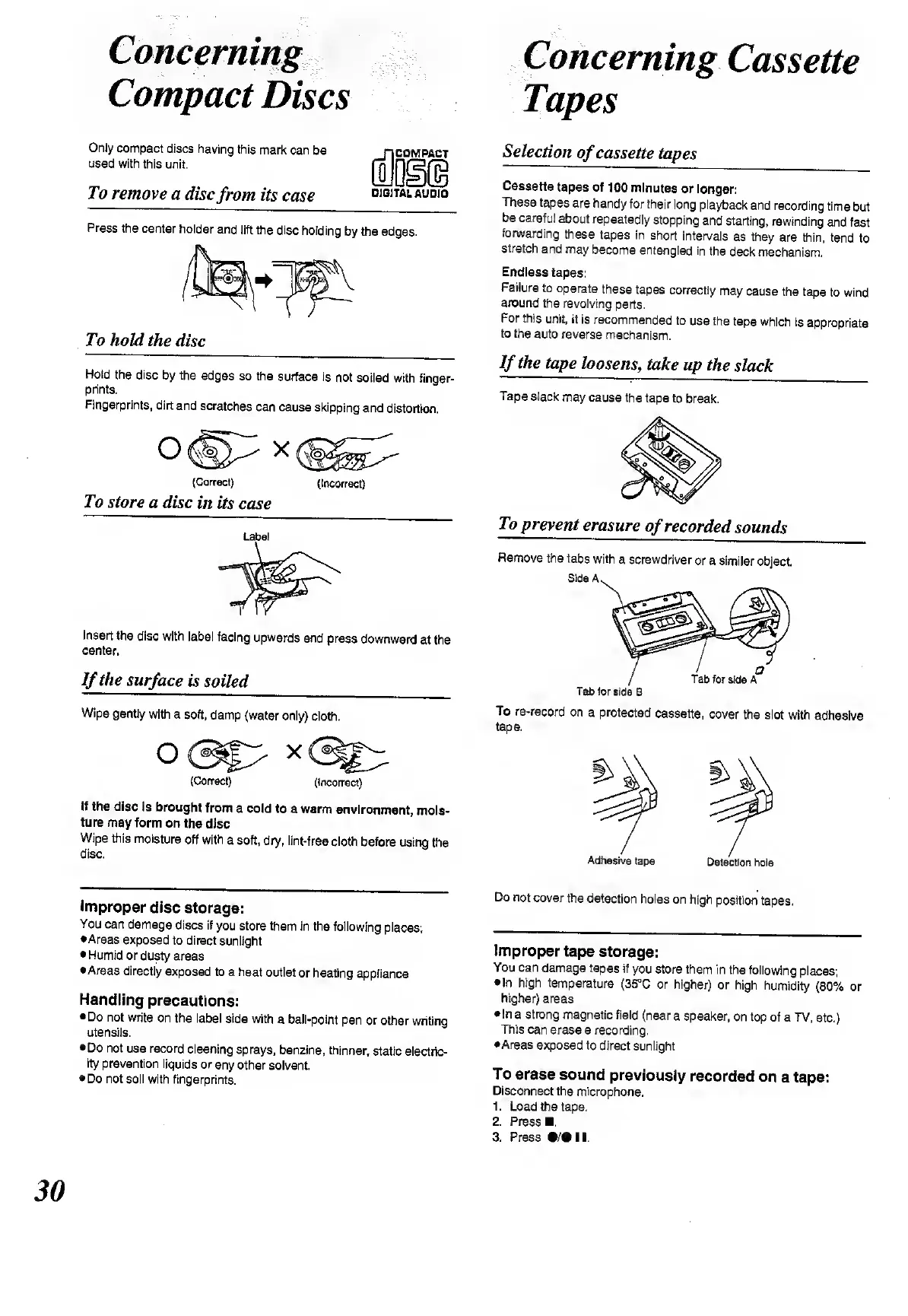 Panasonic RX-ES50 - Concerning Compact Discs; Concerning Cassette Tapes