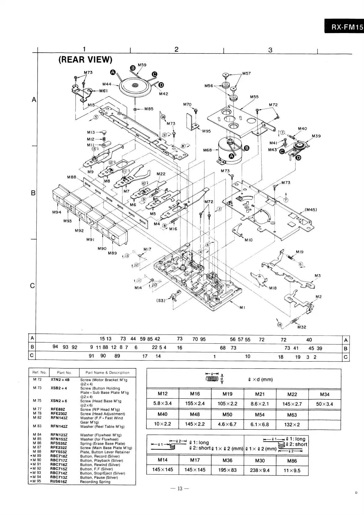 Panasonic RX-FM15 - Mechanism Parts (Rear View); Mechanism Parts Location (Rear View); Mechanism Fasteners