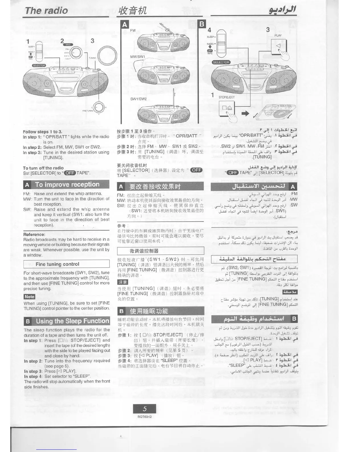 Panasonic RX-FS70 - The Radio; To Improve Reception; Using the Sleep Function; Fine Tuning Control