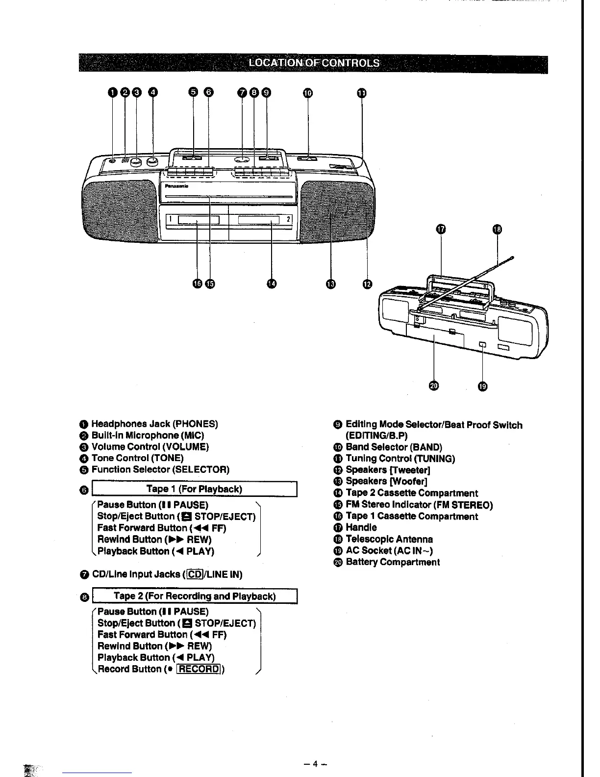 Panasonic RX-FT500 - Location of Controls