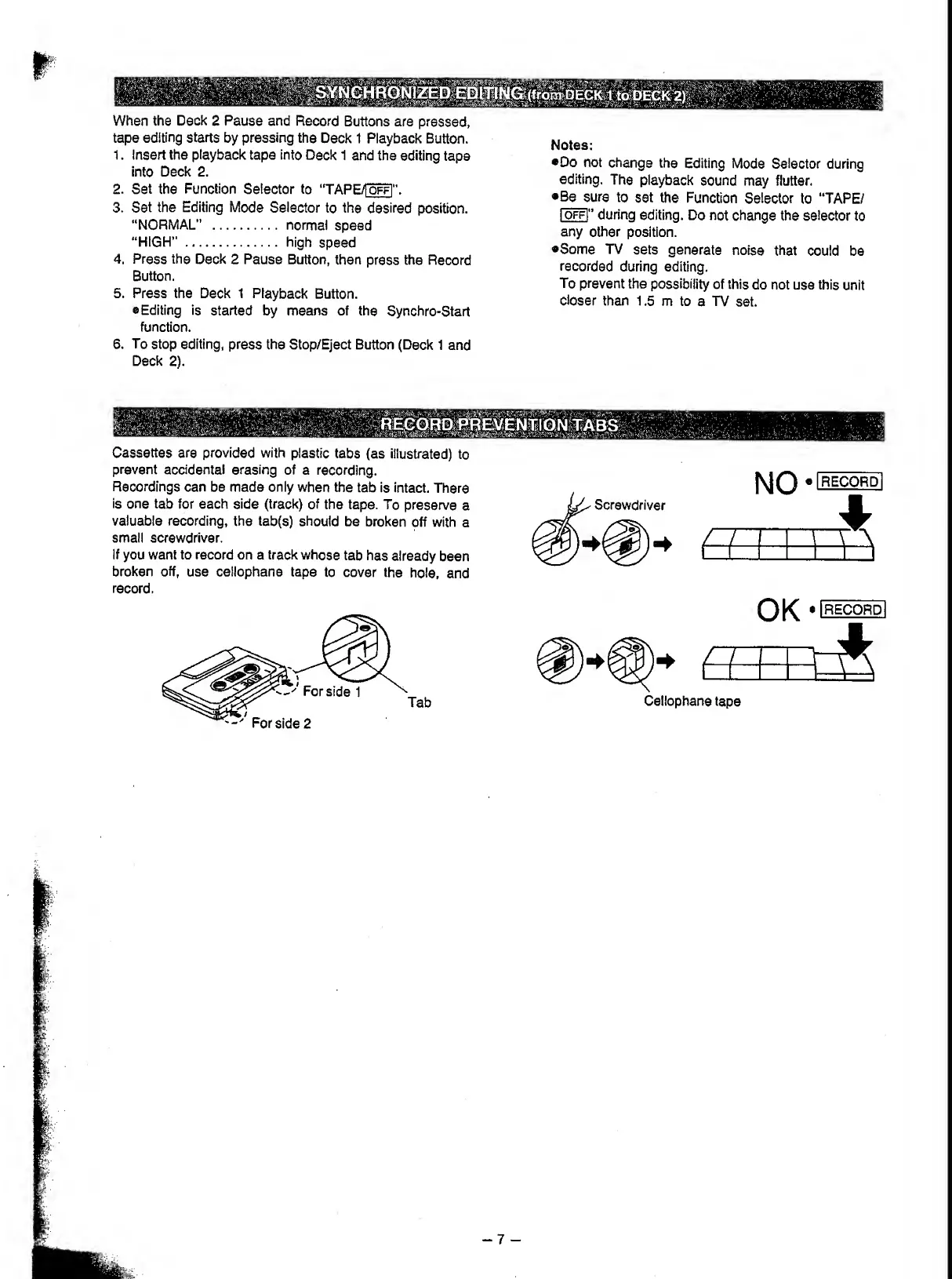 Panasonic RX-FT510 - Advanced Tape Operations; Synchronized Editing; Record Prevention