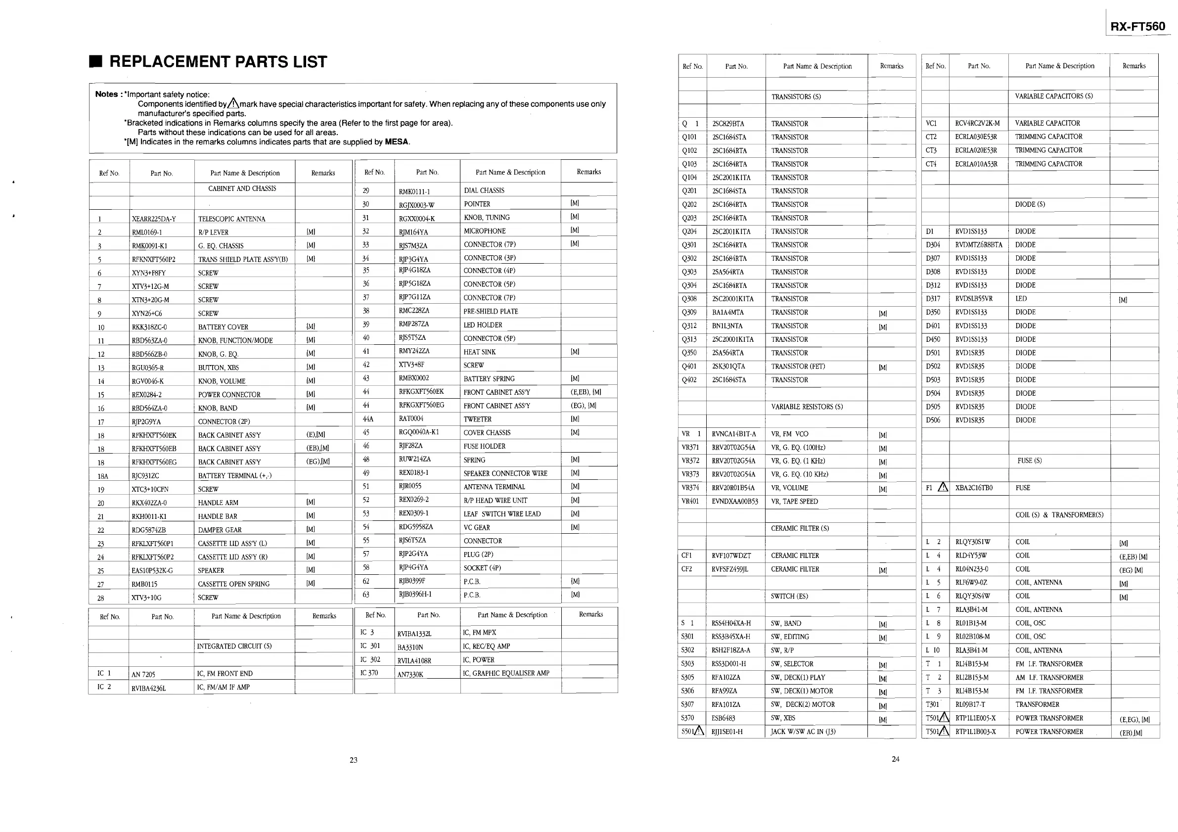 REPLACEMENT PARTS LIST