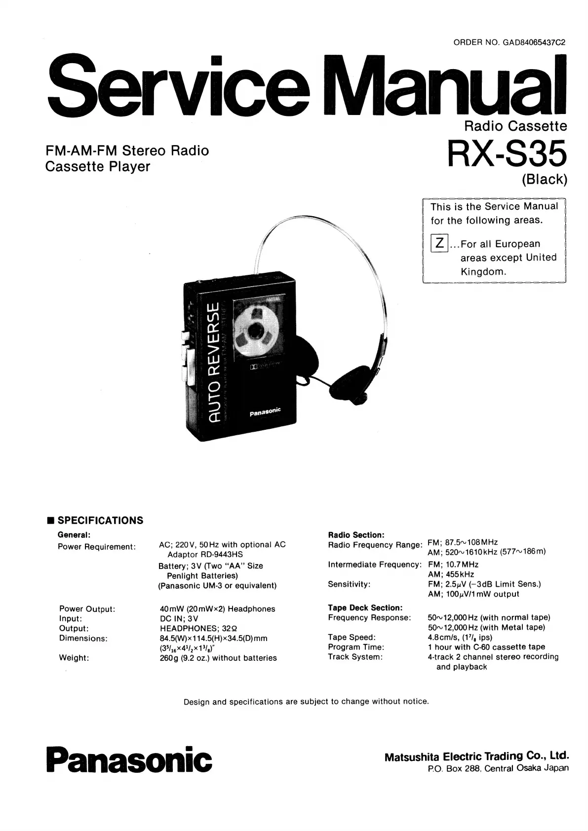 Panasonic RX-S35 - Specifications; General Specifications; Radio Specifications; Tape Deck Specifications