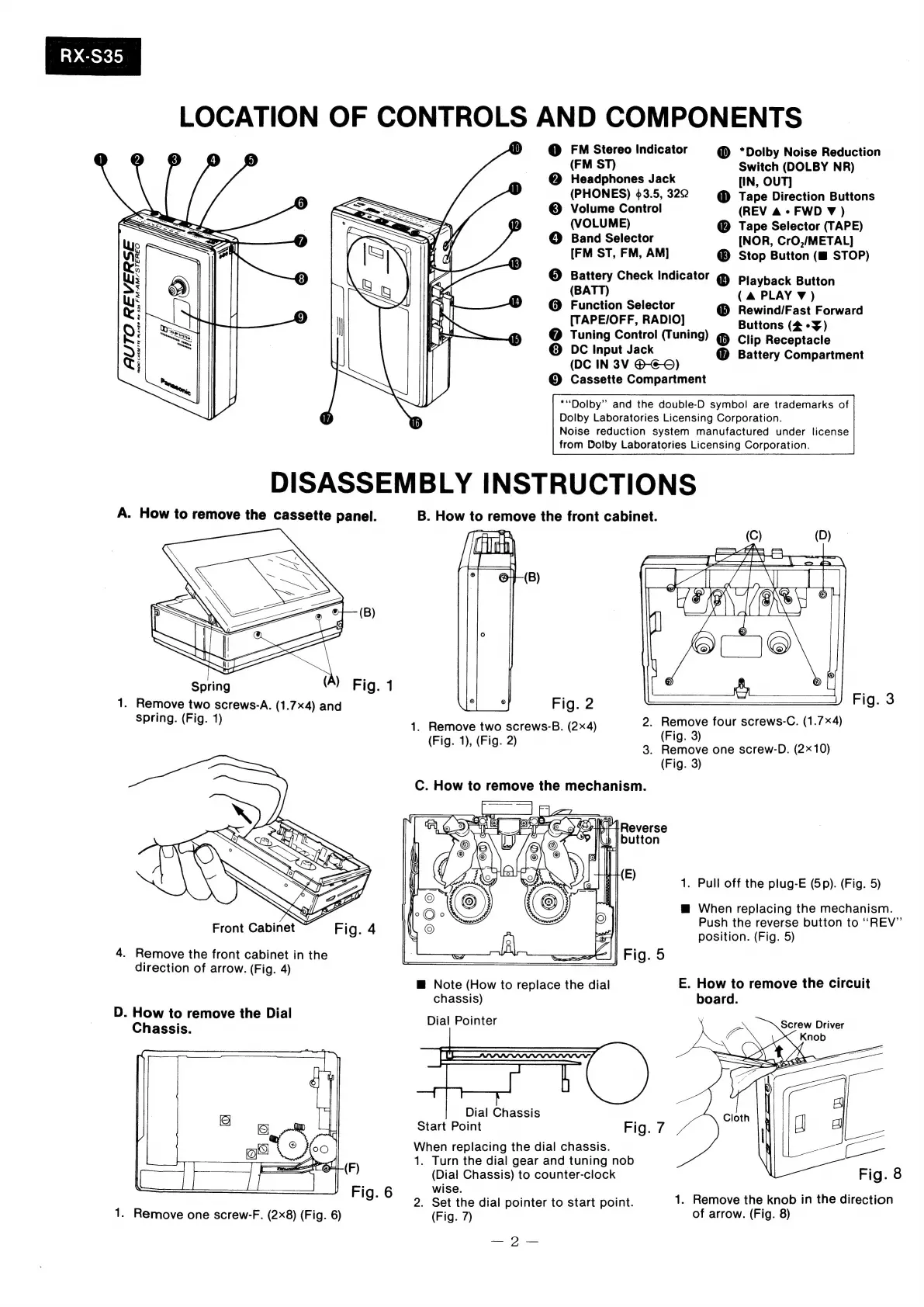 Panasonic RX-S35 - Location of Controls and Components; Component Identification; Disassembly Instructions; General Disassembly Steps