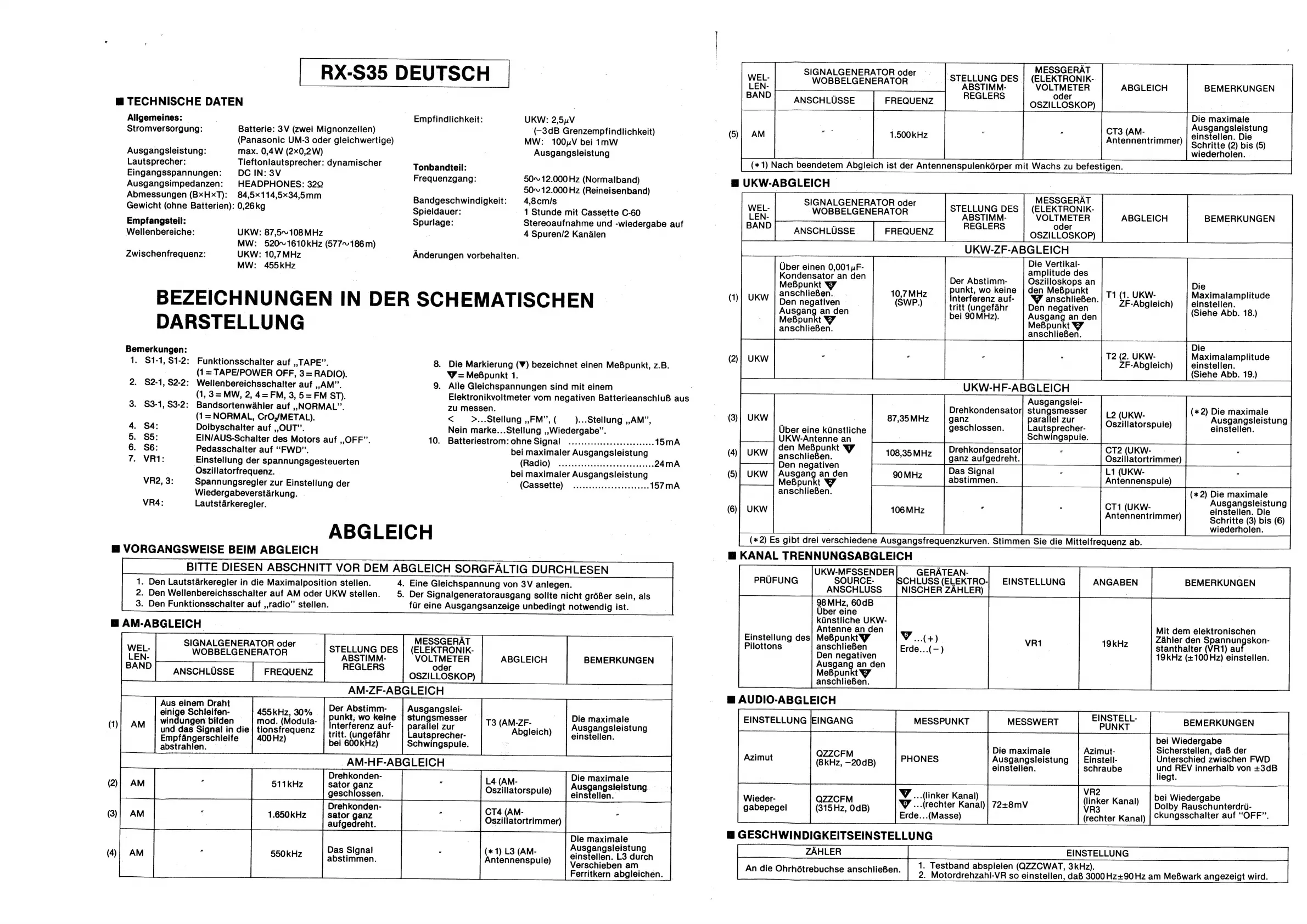 Panasonic RX-S35 - Schematic Symbol Explanations; Symbol Key; Alignment and Adjustment Procedures; AM Band Adjustment