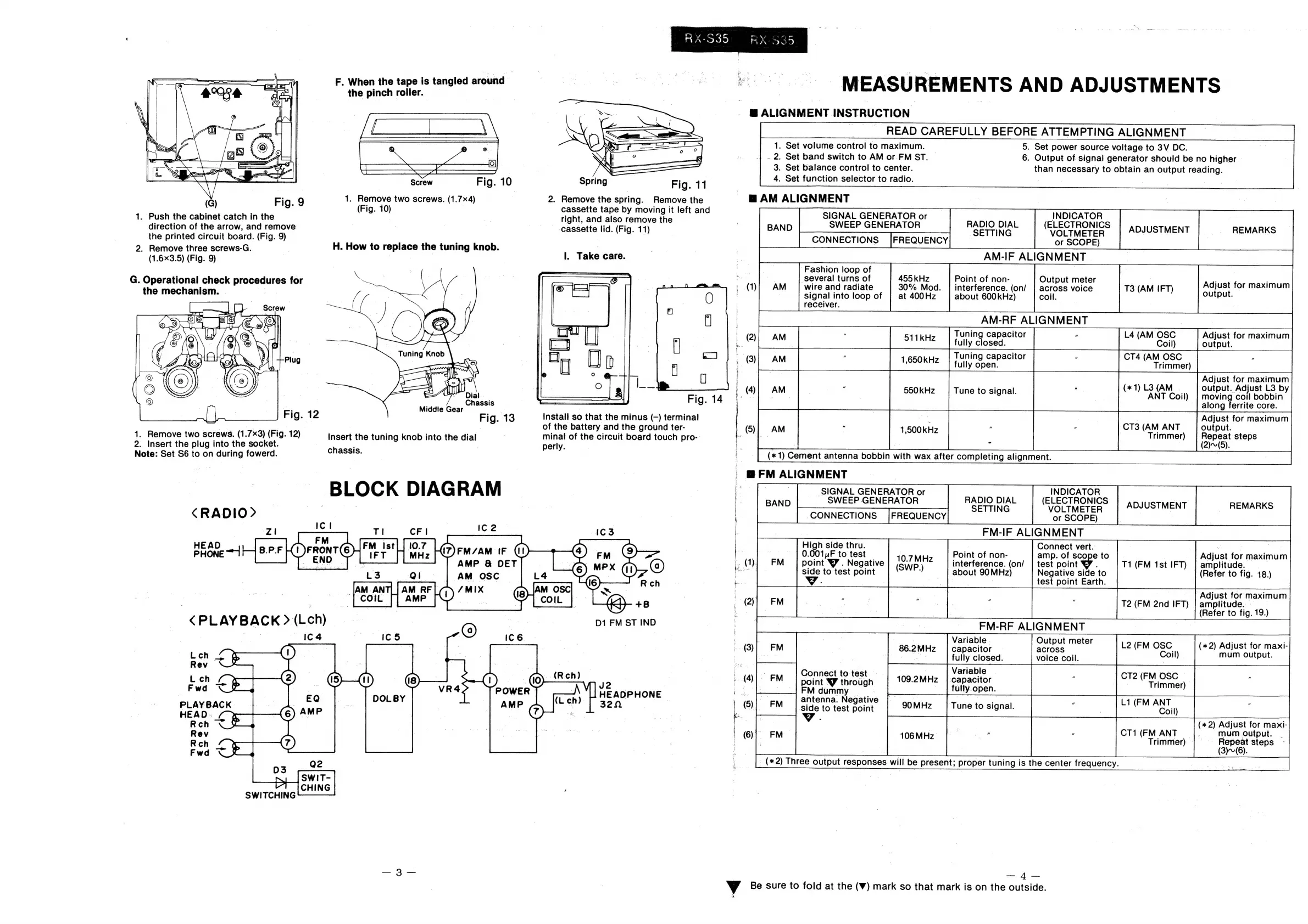 Panasonic RX-S35 - Measurements and Adjustments; Alignment Instructions Overview; AM Band Alignment Procedures; FM Band Alignment Procedures