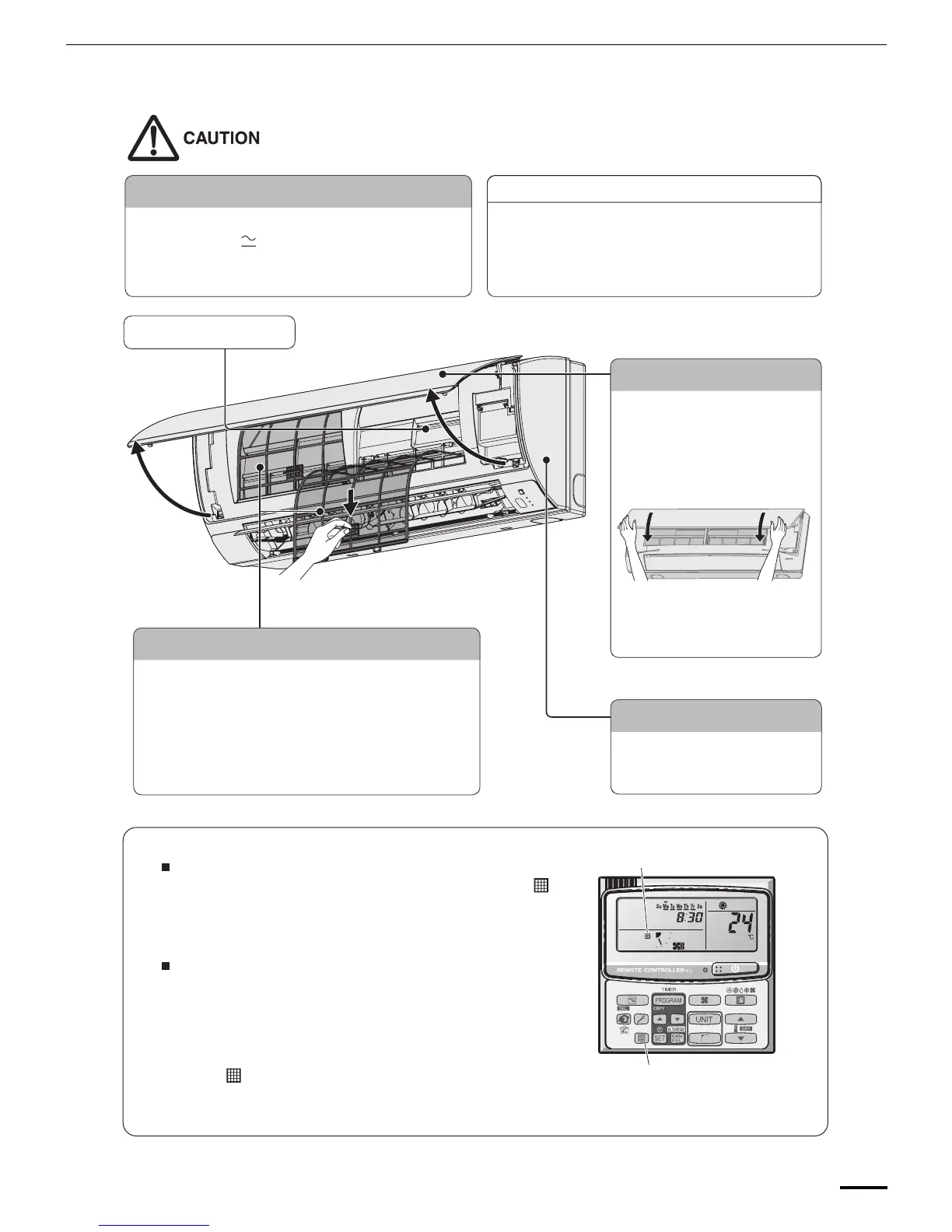 (Filter) appears on the display. Clean the filter frequently for