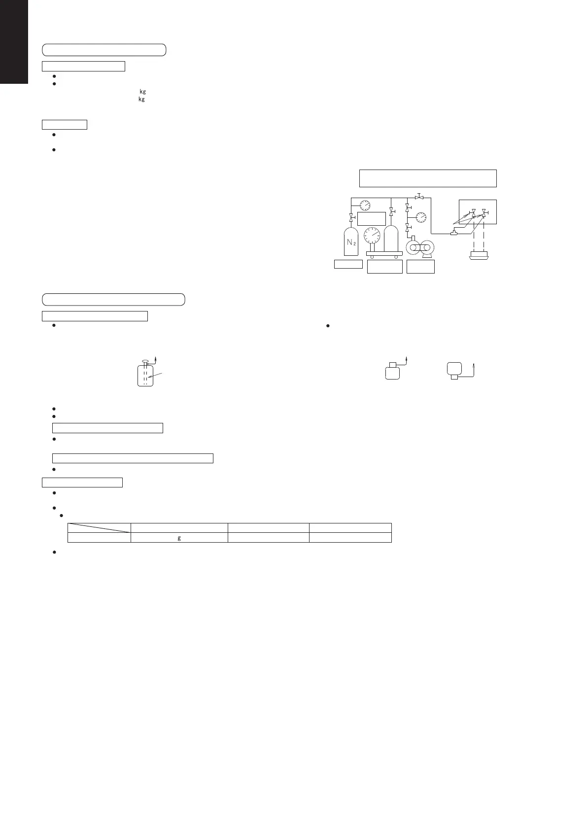 For refi lling refrigerant, fi rst collect all residual refrigerant and after vacuum dehydration using the vacuum pump. Refi ll the refrigerant according to the prescribed amount stated