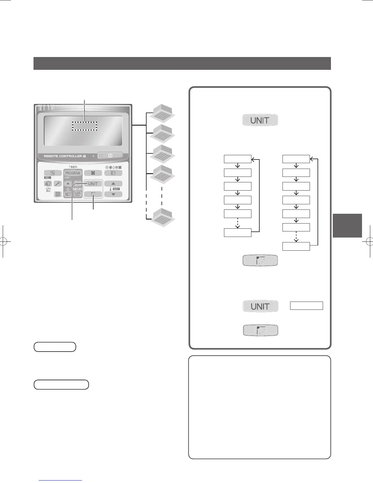 Wenn mehrere Innengeräte mit 1 Fernbedienung gesteuert werden, kann die Ausblasrichtung individuell für einzelne Innengeräte