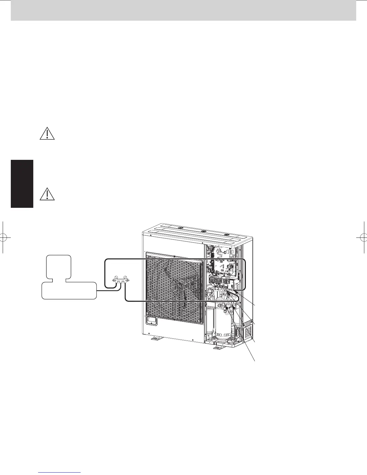 (5) Turn the power ON at the outdoor unit where vacuum will be applied. Then run the vacuum pump and continue