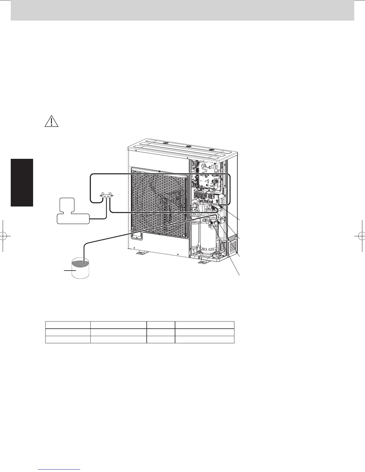 (2) Follow the instructions in “5. Evacuating System,” and apply vacuum to the outdoor unit to be charged with oil.
