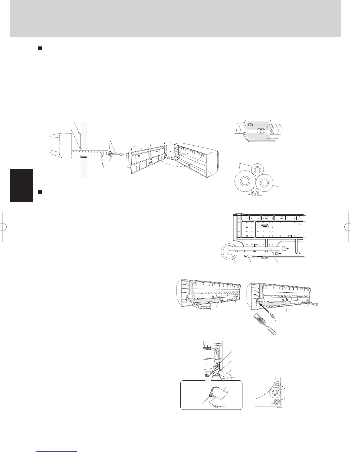 Assemble the refrigerant tubing, drain hose, and conduit (including inter-unit wiring) as shown in Fig. 2-132.
