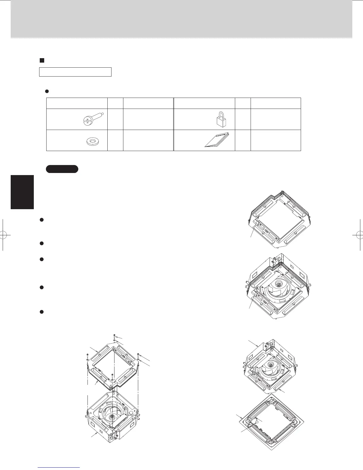 1. Be careful handling the unit when installing it inside the ceiling. Use particular care to avoid allowing