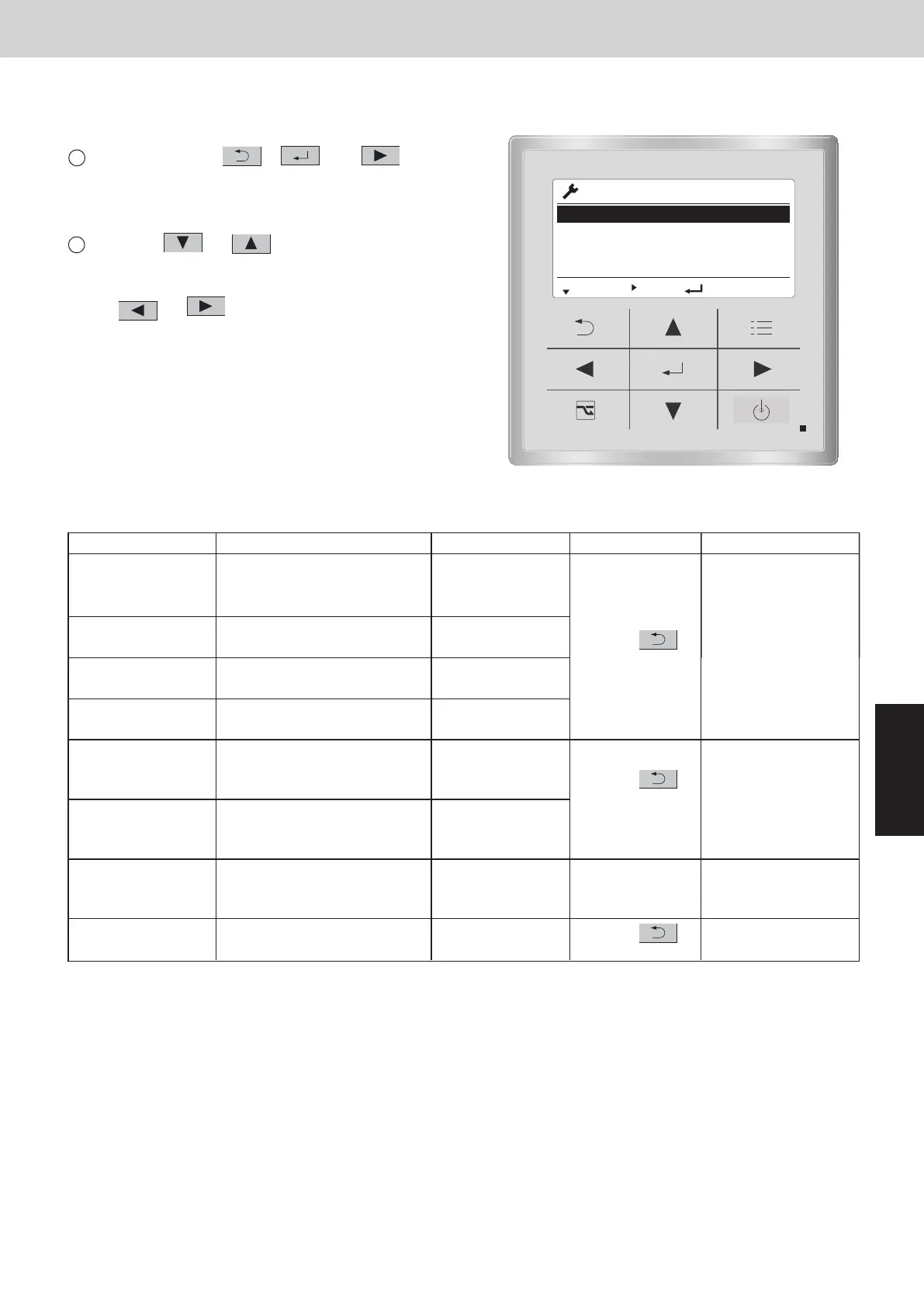 • The remote controller includes a number of servicing functions. Use these as needed for test runs and inspections.