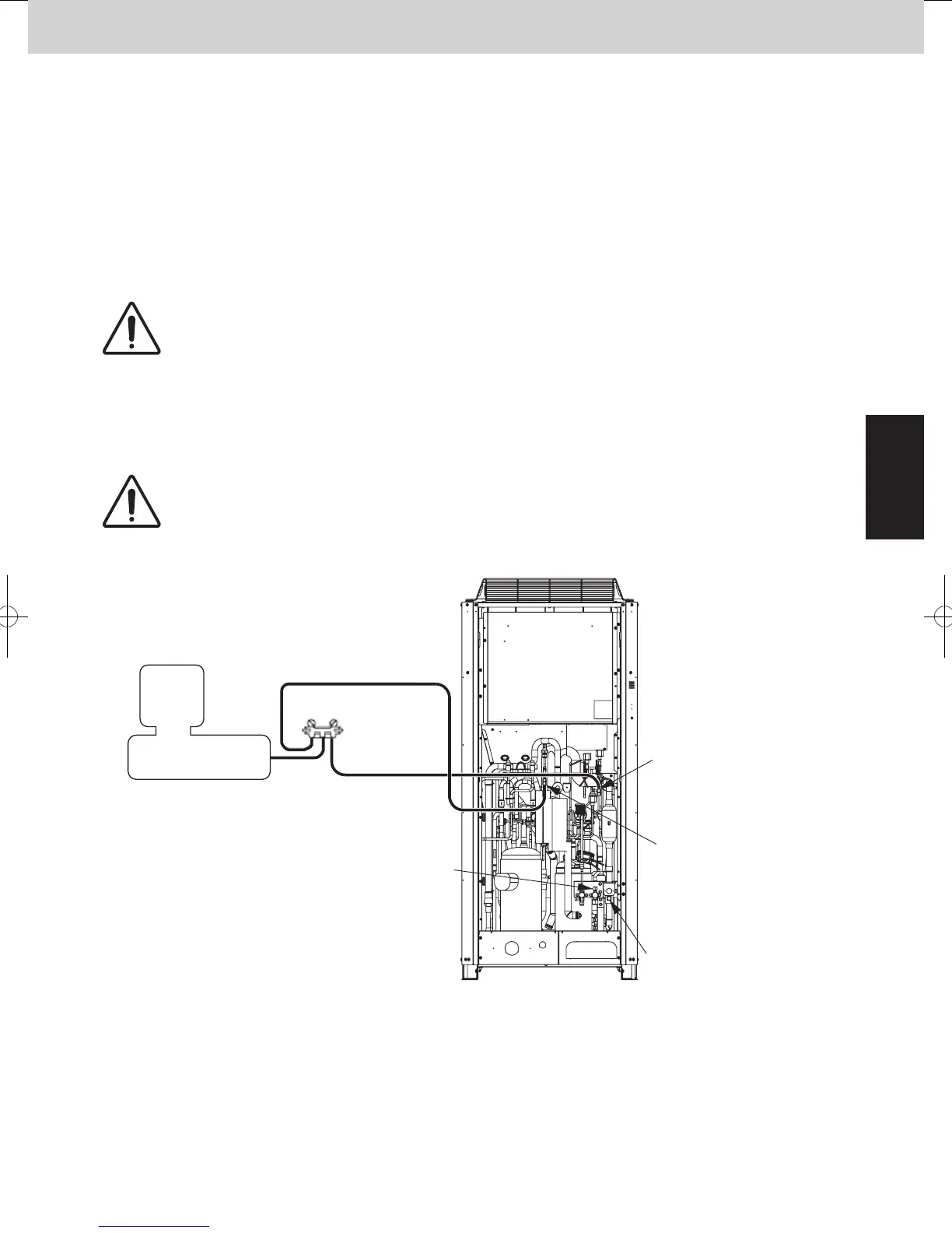 (1) Check that each service valve of the gas tubes, liquid tube, and balance tube in the outdoor unit are fully closed.