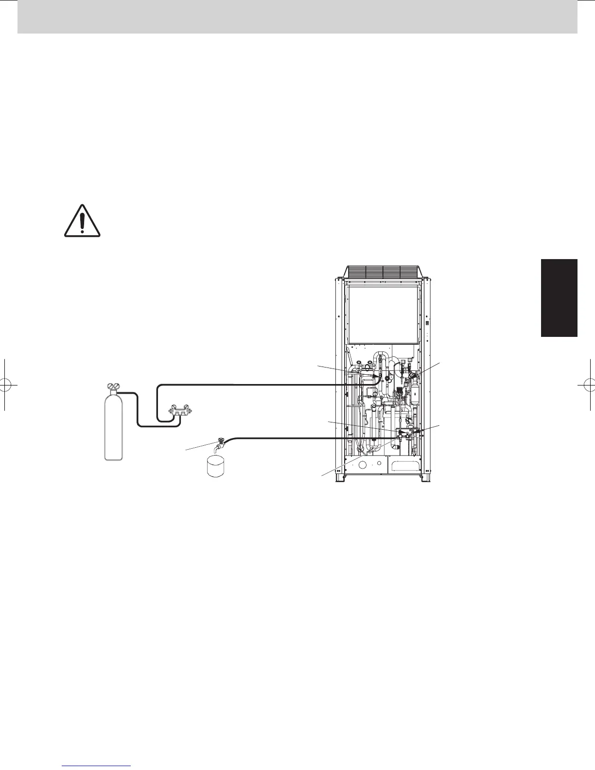Install hoses as indicated on the equipment and feed nitrogen gas gradually to provide pressure to the system from