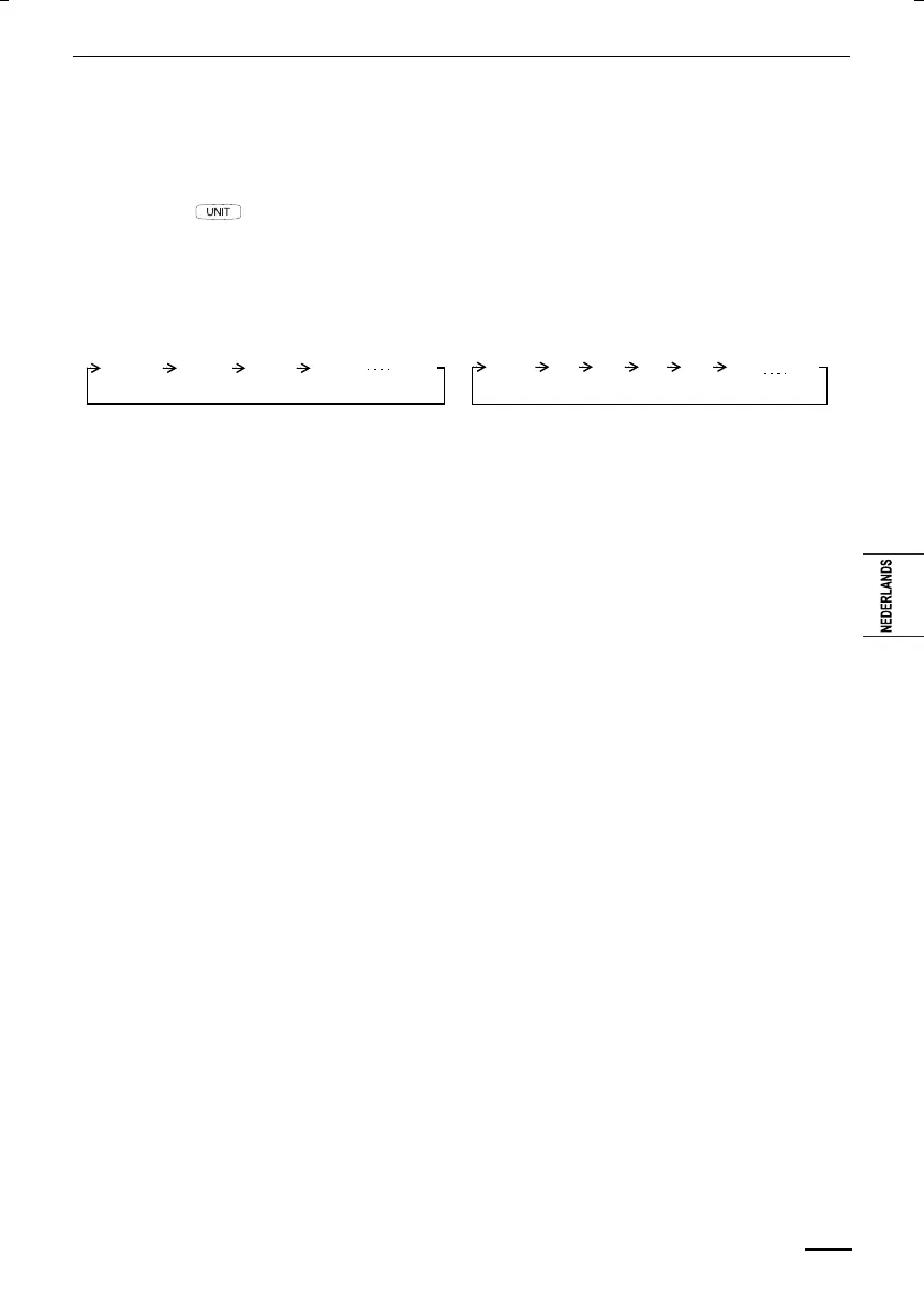 Elke keer als u op UNIT drukt, verandert de aanduiding in onderstaande volgorde.