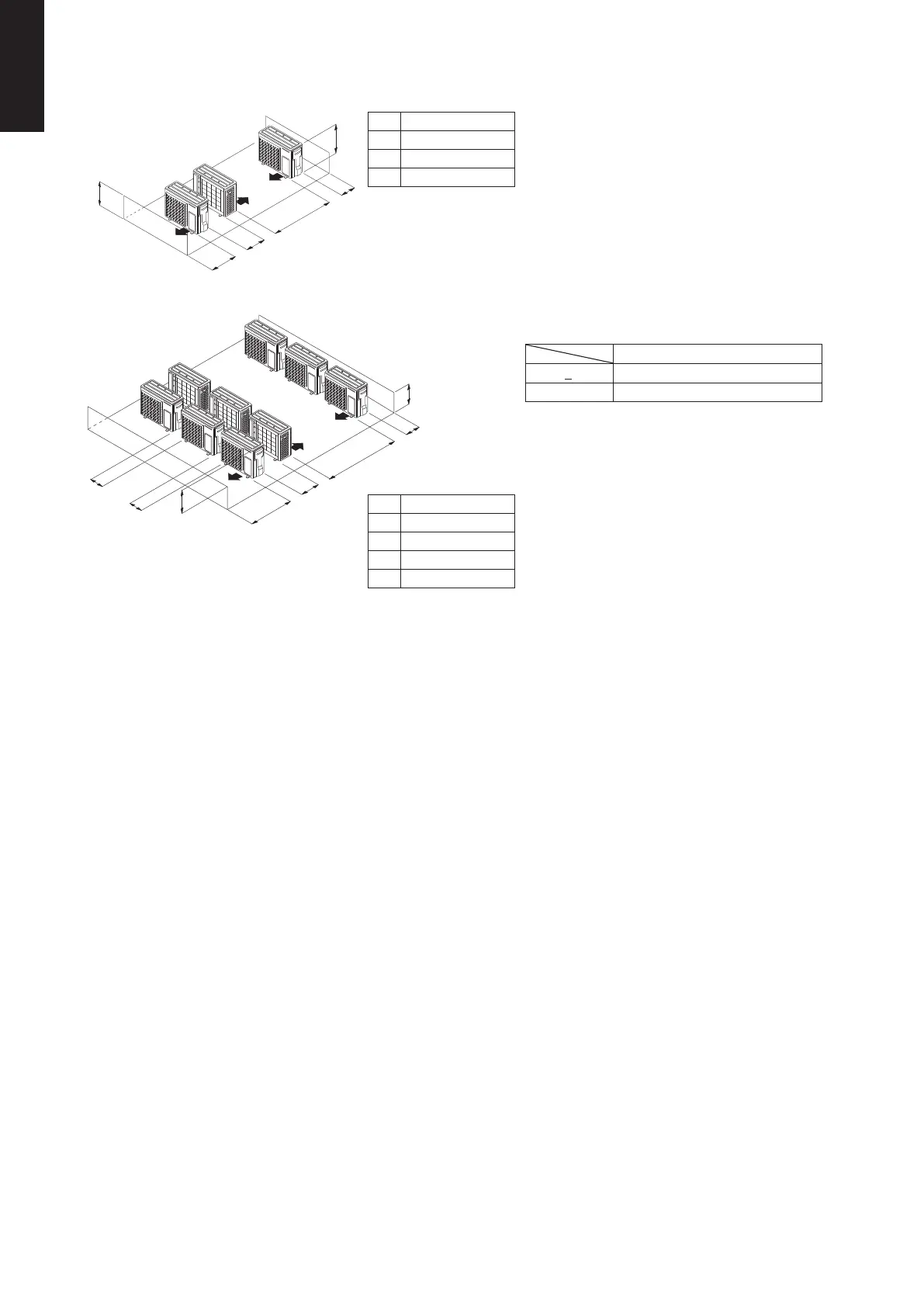 (E) When outdoor units are installed in rows, such as on a rooftop (L < H)